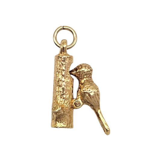 9ct 375 Yellow Gold Woodpecker Articulated Charm 1977 L 1.5 cm 2.8 g.