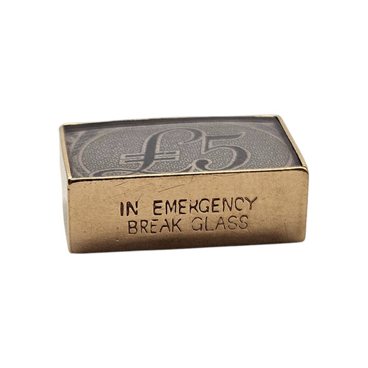 9ct 375 Yellow Gold £5 Emergency Banknote Charm 1973 L 1.8 cm 3.2 g.