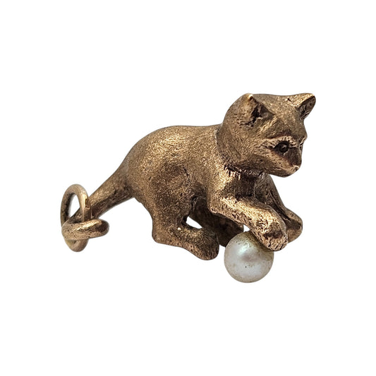 Heavy 9ct 375 Yellow Gold Playful Cat Charm 1966 L 2.1 cm 6.8 g.