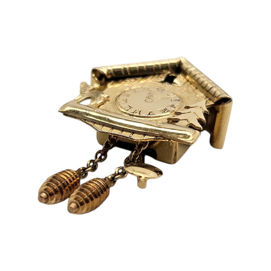 18ct Yellow Gold Articulated Cuckoo Clock Charm L 2.4 cm 3.1 g.