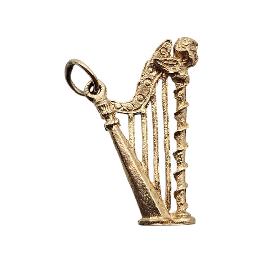 9ct 375 Yellow Gold Irish Harp Charm Pendant 1973 L 2.4 cm 2.3 g.