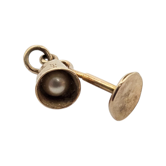 14ct 585 Yellow Gold Tinkling Bell With Flowers Charm L 1.4 cm 1.6 g.