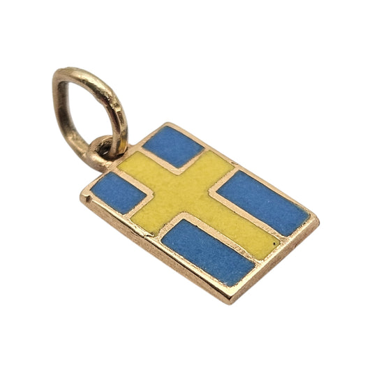 18ct Yellow Gold & Enamel Swedish Flag Charm L 9 mm 0.7 g.