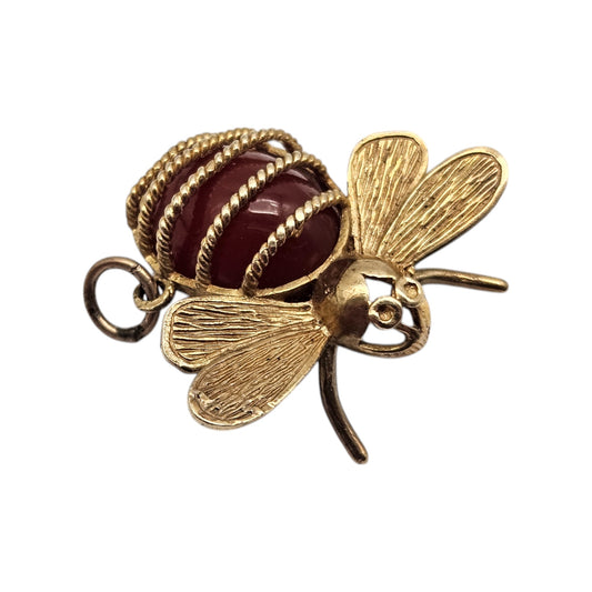 Unusual 9ct 375 Yellow Gold Bee Charm with Carnelian 1971 L 2.4 cm 5.5 g