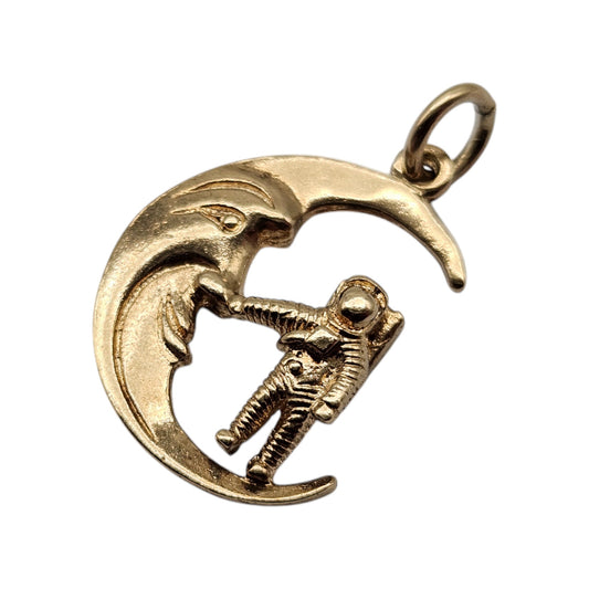 9ct 375 Yellow Gold Astronaut on the Moon Charm L 1.8 cm 2.5 g.
