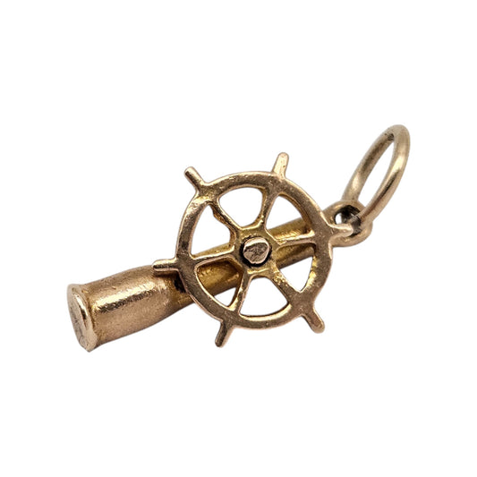 Unusual 9ct Yellow Gold Nautical Telescope & Ships Wheel Articulated Charm 1950