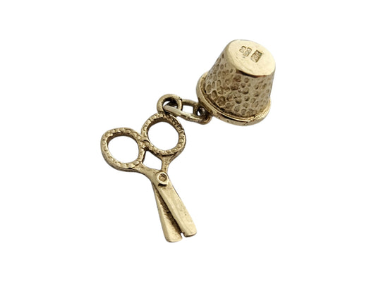 9ct 375 Yellow Gold Scissors & Thimble Sewing Charm 1997 L 1.4 cm 1.3 g.