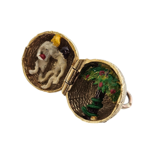 Rare 9ct 375 Yellow Gold & Enamel Adam & Eve Opening Charm 1969 L 1.2 cm 5.0 g