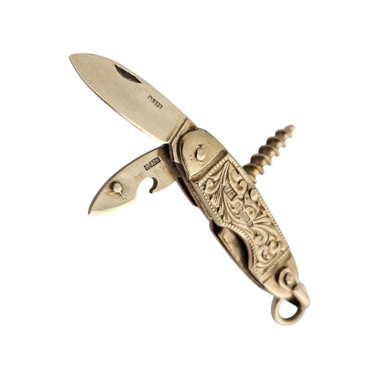 9ct 375 Yellow Gold Pocket Knife Opening Charm 1967 L 2.7 cm 6.7 g