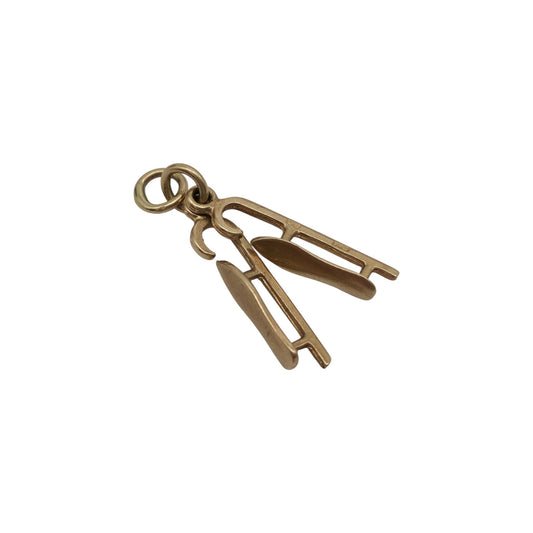 9ct 375 Yellow Gold Pair Of Skis Charm 1964 L 1.6 cm 0.9 g.