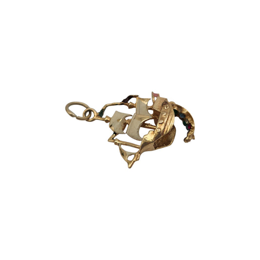 9ct 375 Yellow Gold & Enamel Treasure Ship Opening Charm 1978 L 1.6 cm 1.7 g.