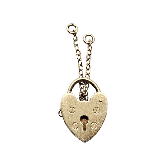 Unusual 9ct 375 Yellow Gold Heart Shaped Padlock c.1970's L 1.9 cm 2.3 g.