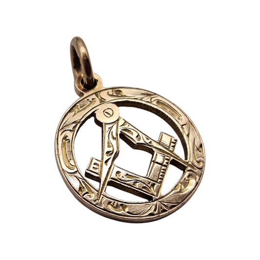 9ct 375 Rose Gold Masonic Fob Pendant 1928 L 1.9 cm 3.8 g.