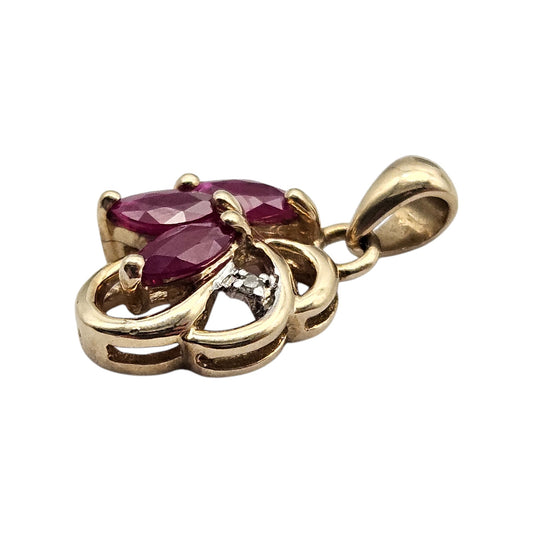 9ct 375 Yellow Gold Ruby & Diamond Pendant L 1.0 cm 1.1 g.