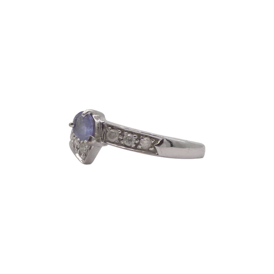 9ct 375 White Gold Tanzanite & Diamonds Ring Size M 2.4 g.
