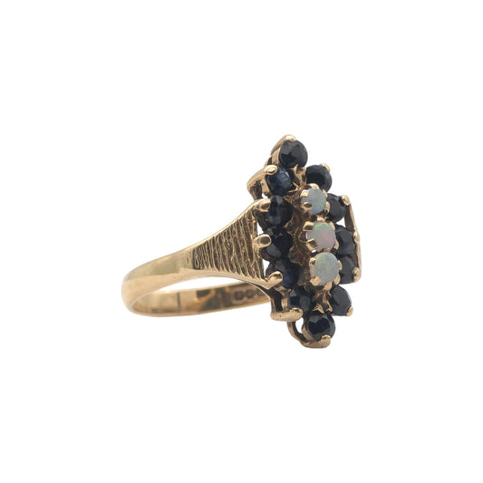 9ct 375 Yellow Gold Ring Set With Sapphires & Opals 1975 Size P 3.2 g