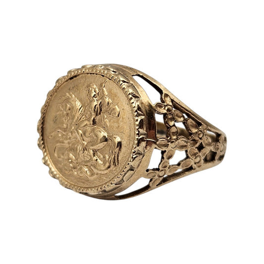 9ct 375 Yellow Gold Saint George and The Dragon Signet Ring 1991 Size I 1/2 2.8 g.