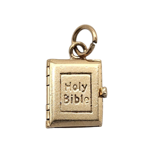 9ct 375 Yellow Gold Holy Bible Opening Charm 1969 L 1.2 cm 3.1 g.Regular price £131.00 GBPRegular priceUnit price / per£143.00 GBPSale price £131.00 GBPSale