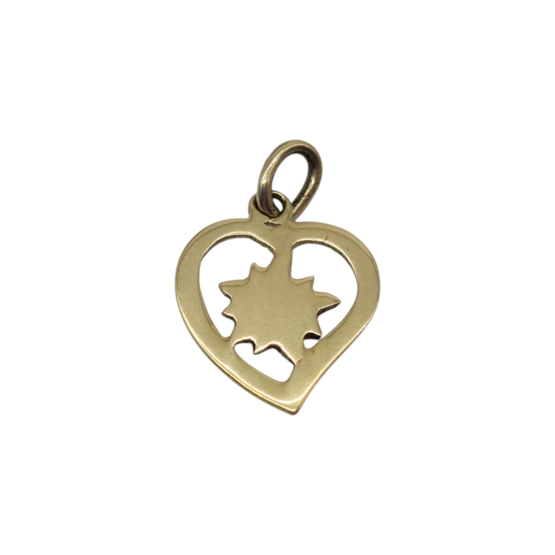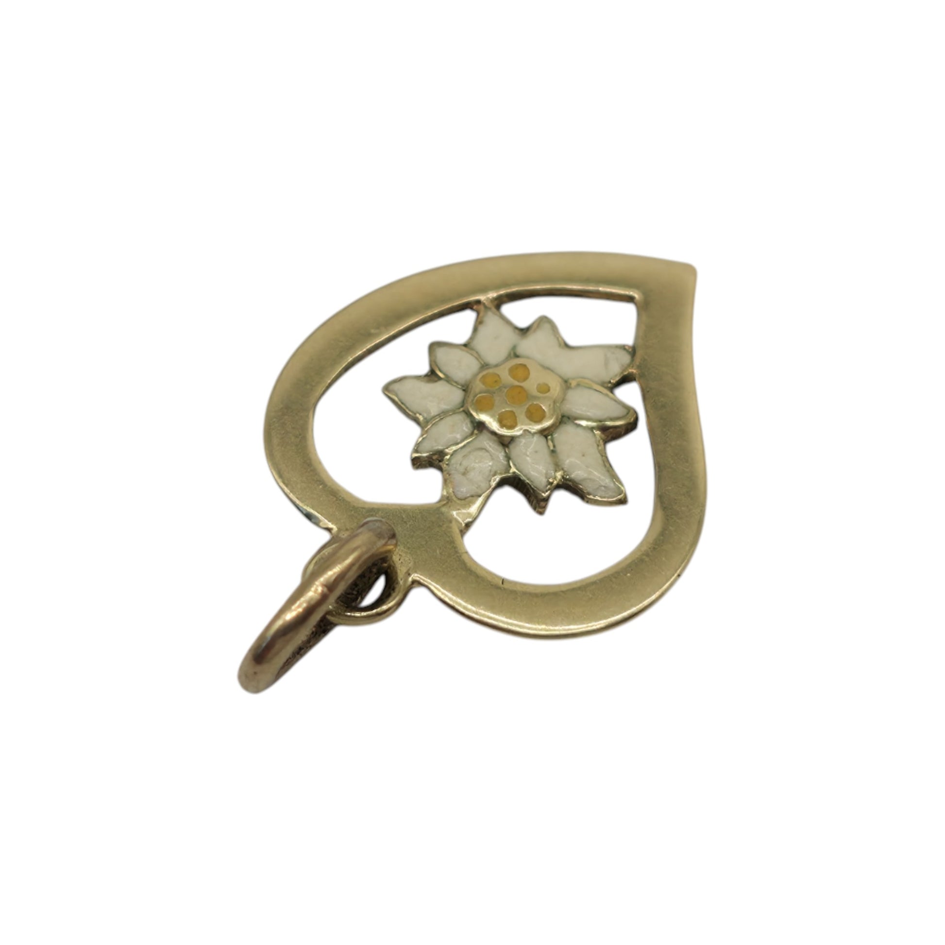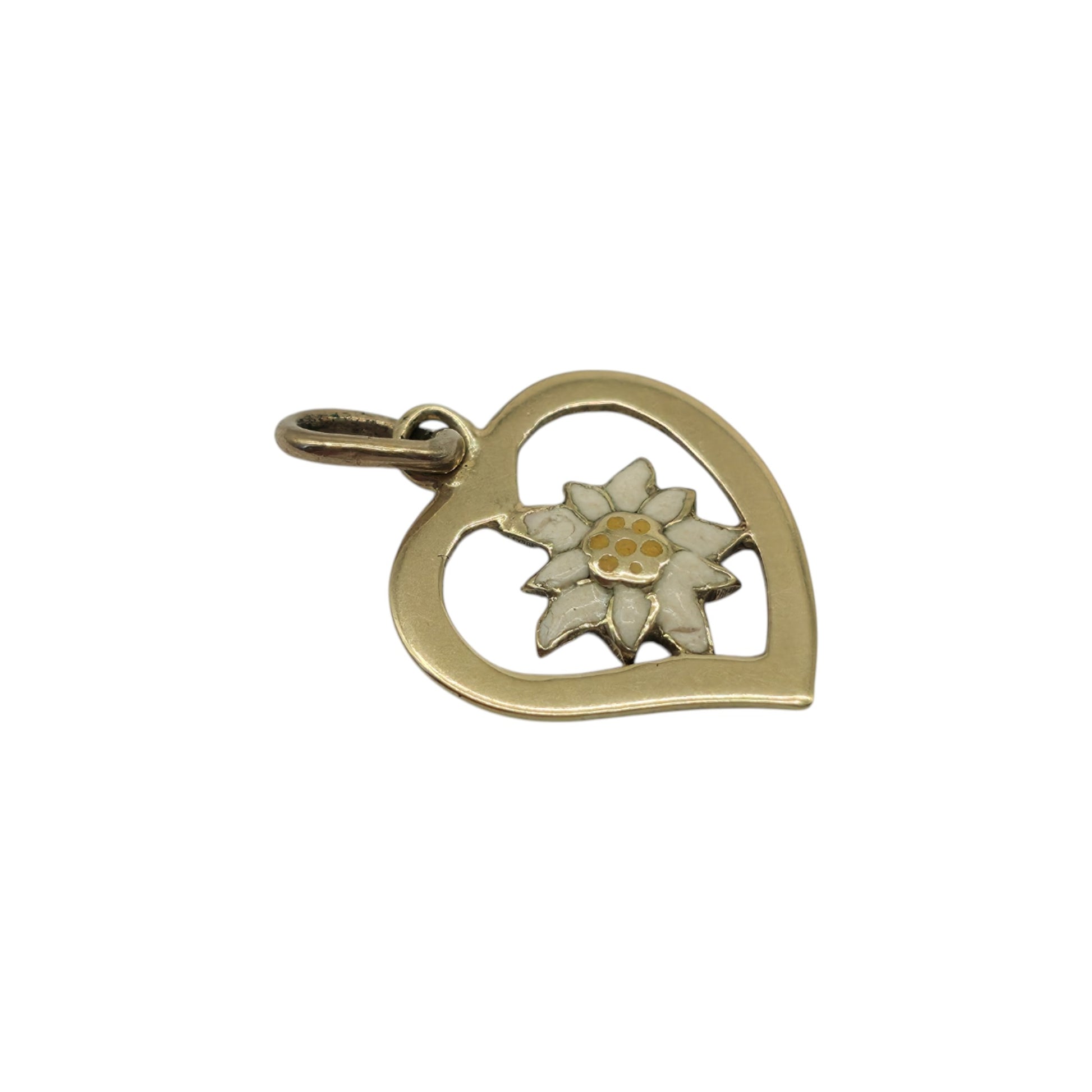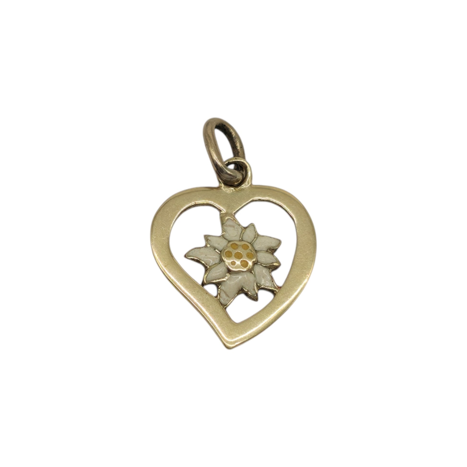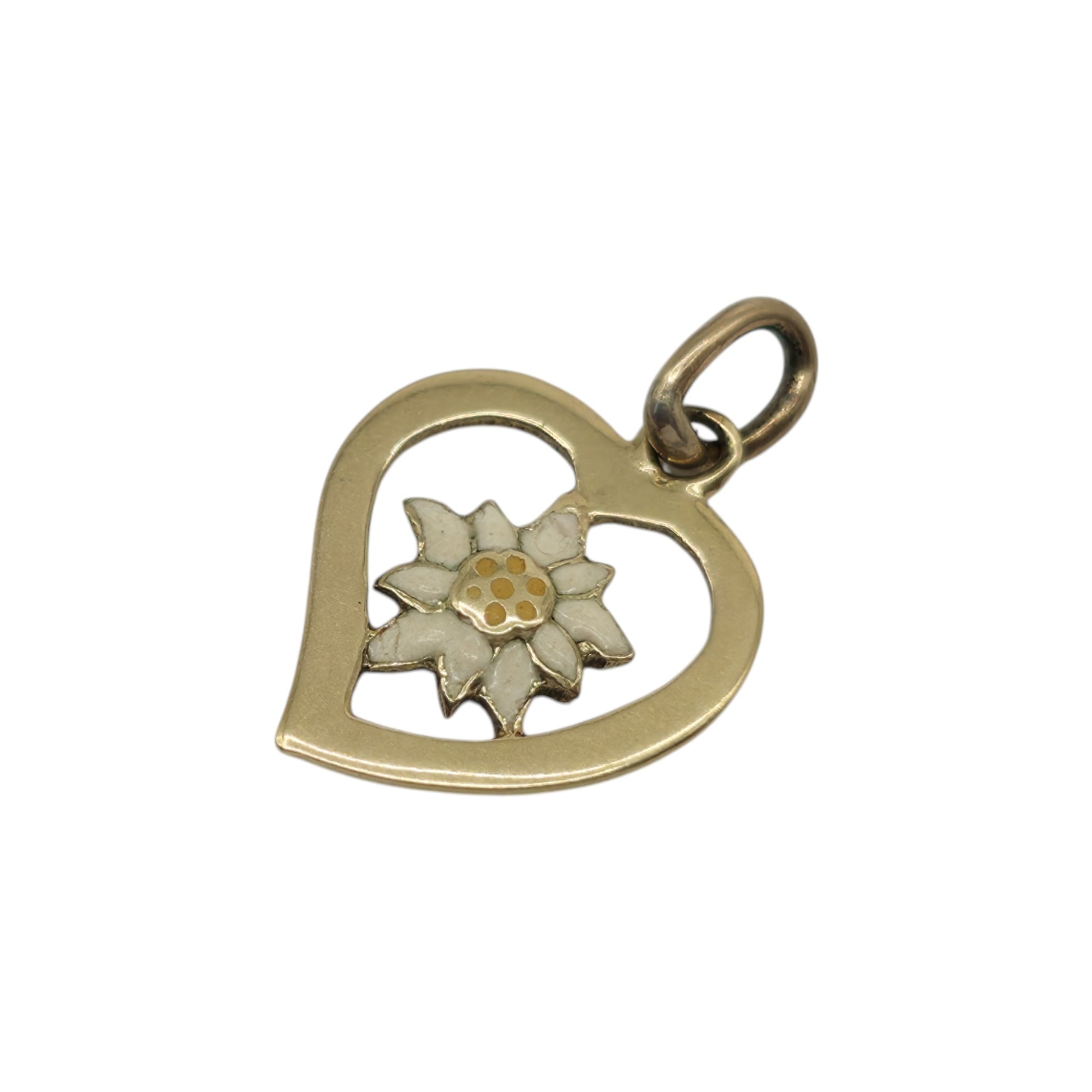 We are selling a pre-owned 14ct gold Heart Charm with enamelled flower.