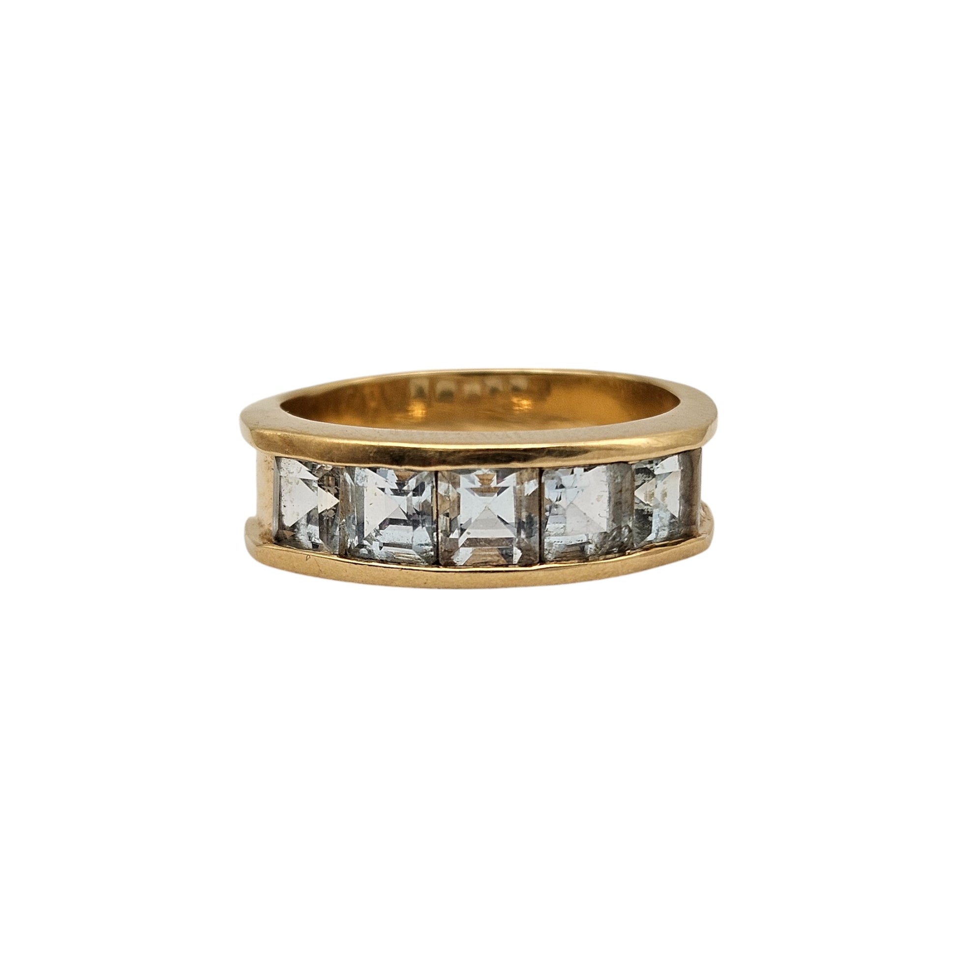 We are selling a heavy 18ct gold Ring set with five Aquamarines.