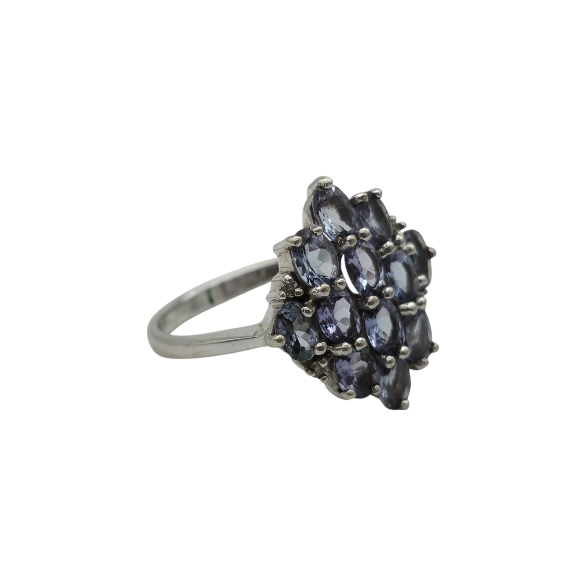 We are selling a pre-owned 9ct gold Cluster Ring set with Tanzanites.