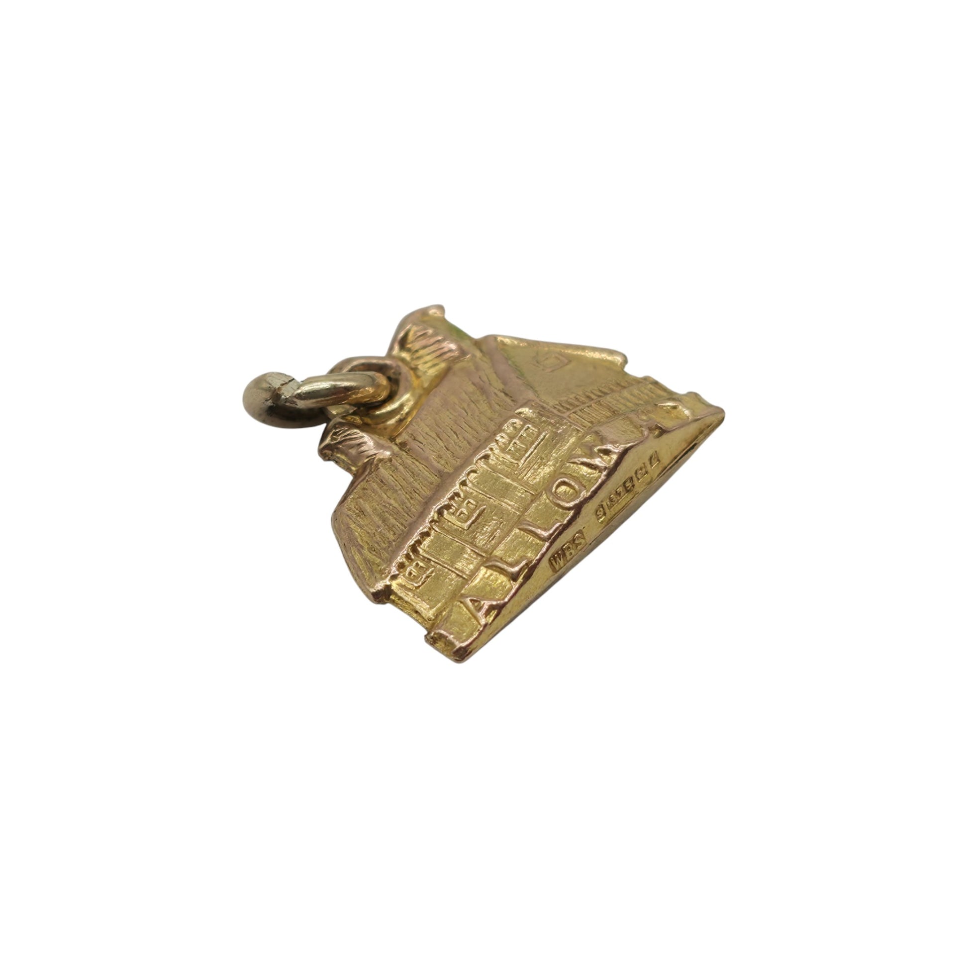 We are selling a pre-owned 9ct gold Alloway Burns Cottage Charm. <Birthplace of Robert Burns who was a Scottish poet in 18th Century.>