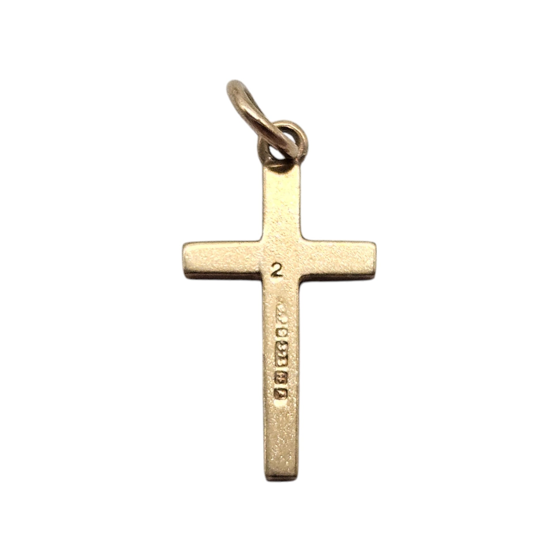9ct 375 Yellow Gold Cross Charm 1964 L 1.5 cm 0.8 g.