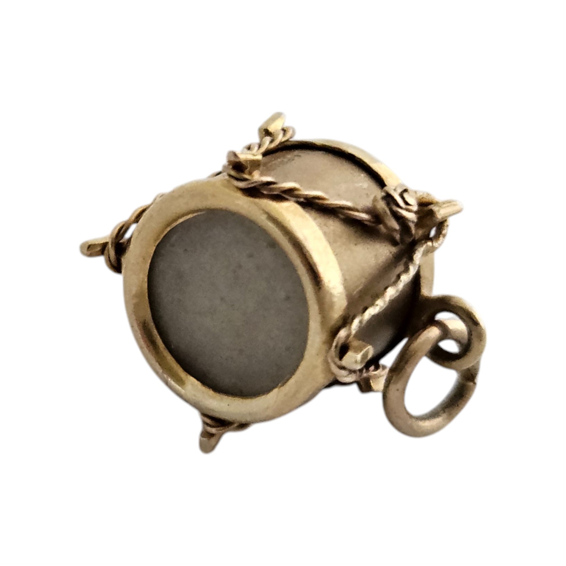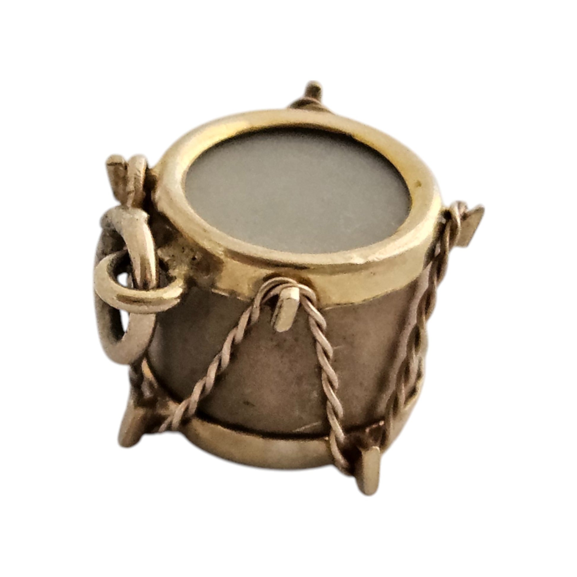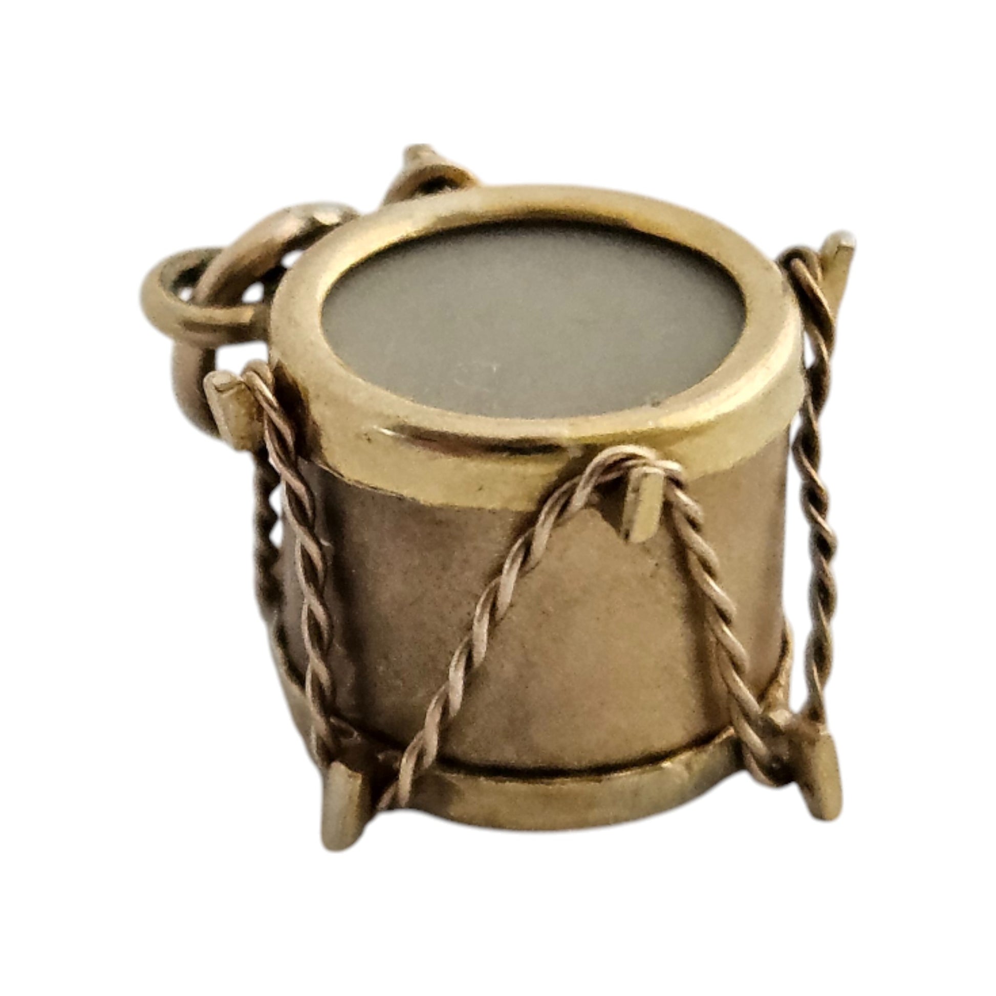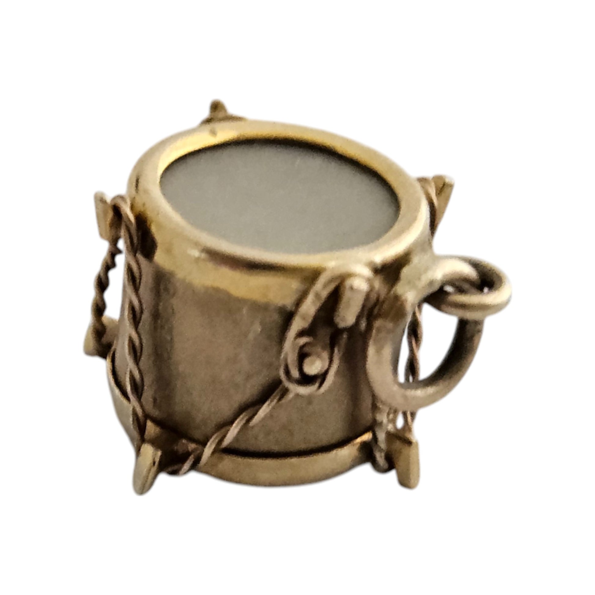 We are selling a 9ct 375 yellow gold Drum Charm with London hallmarks for 1970.