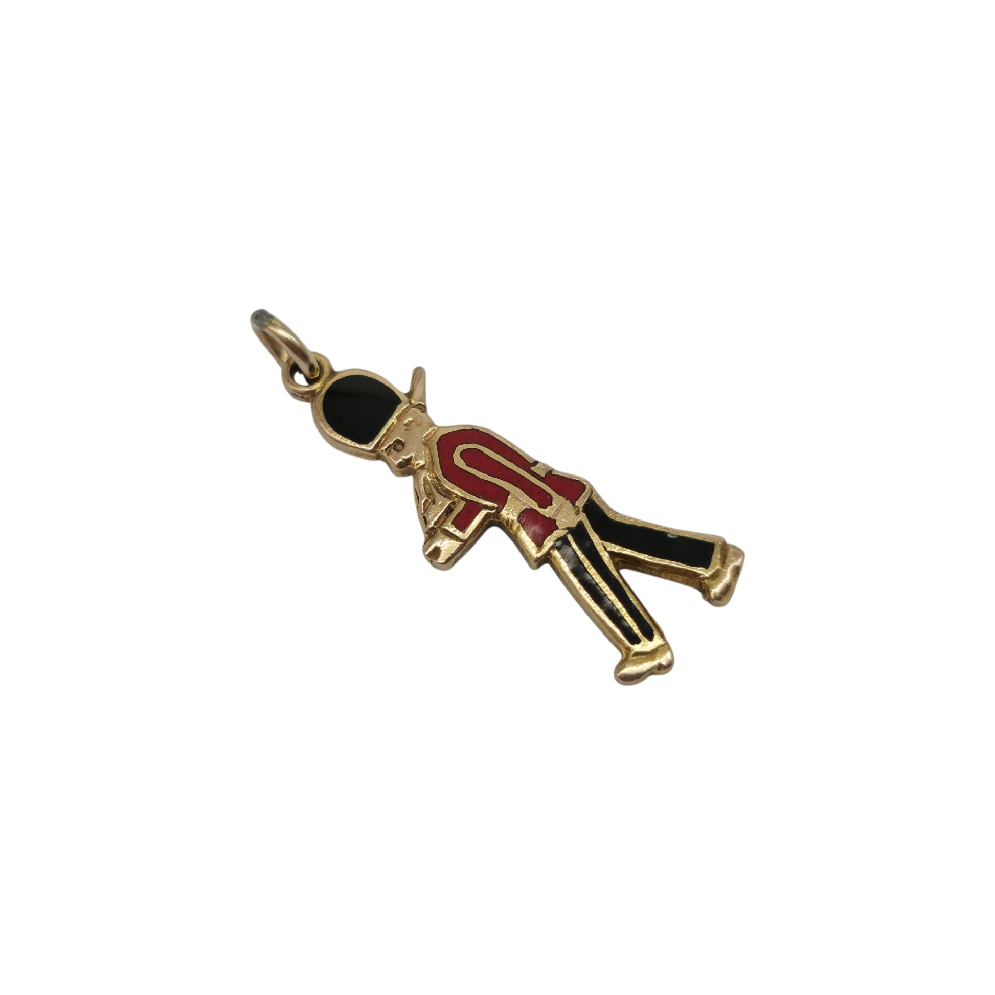9ct 375 Yellow Gold & Enamel Royal Guard Charm c.1960's L 2.0 cm 1.1 g.