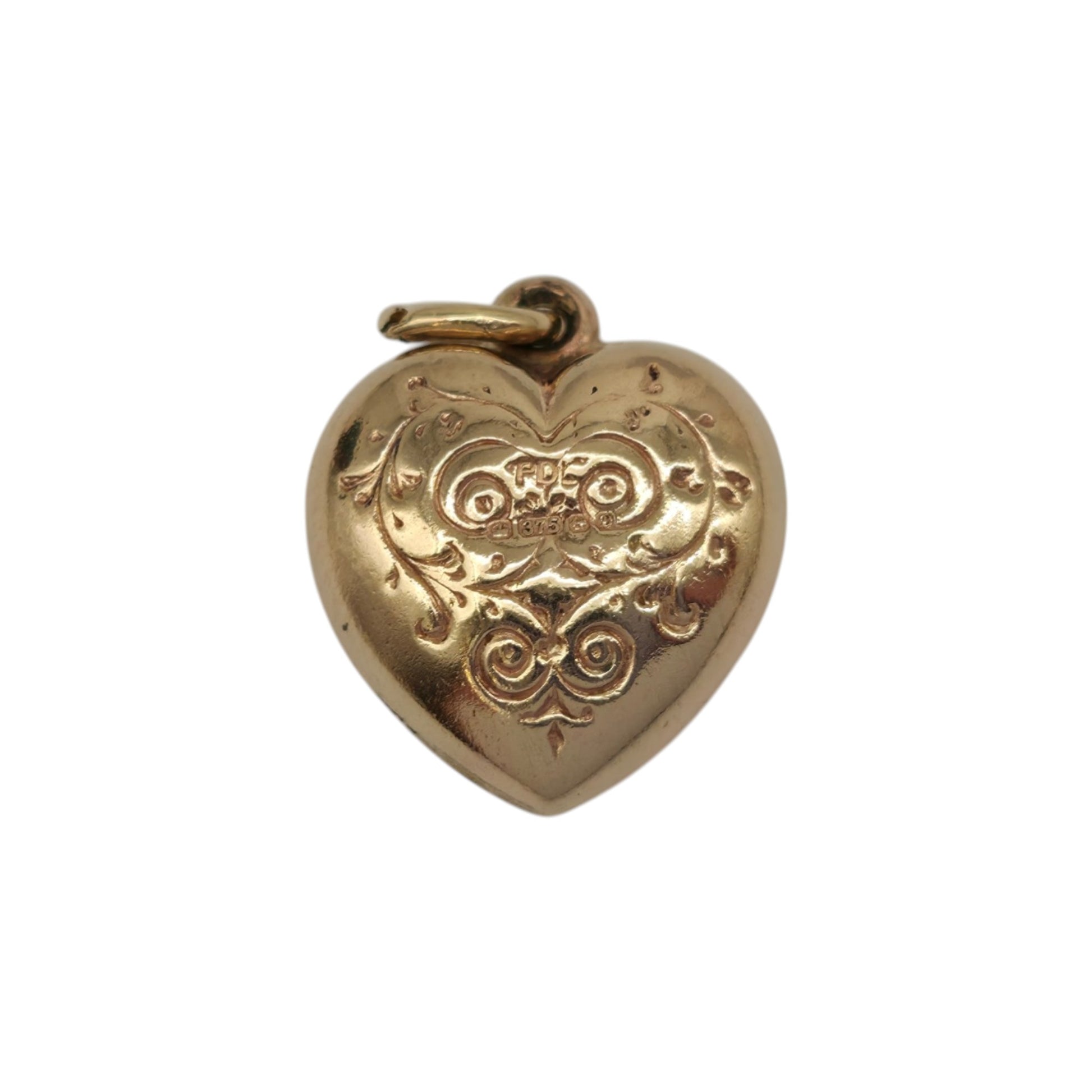 9ct 375 Yellow Gold Engraved Heart Charm 1978 L 1.2 cm 0.8 g.