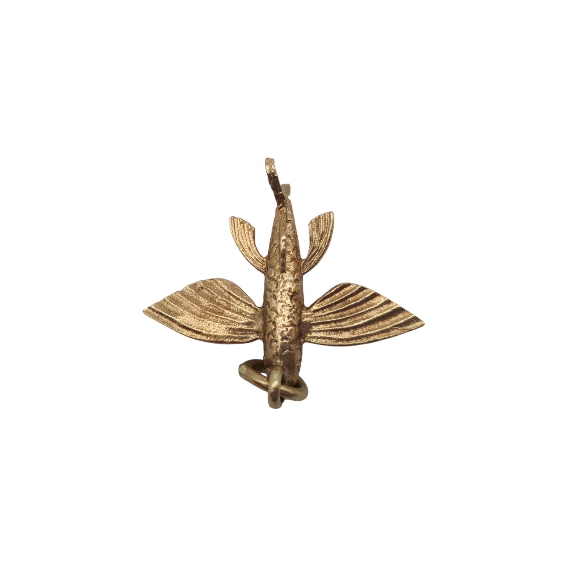 9ct 375 Yellow Gold Flying Fish Charm 1972 L 1.6 cm 1.3 g.