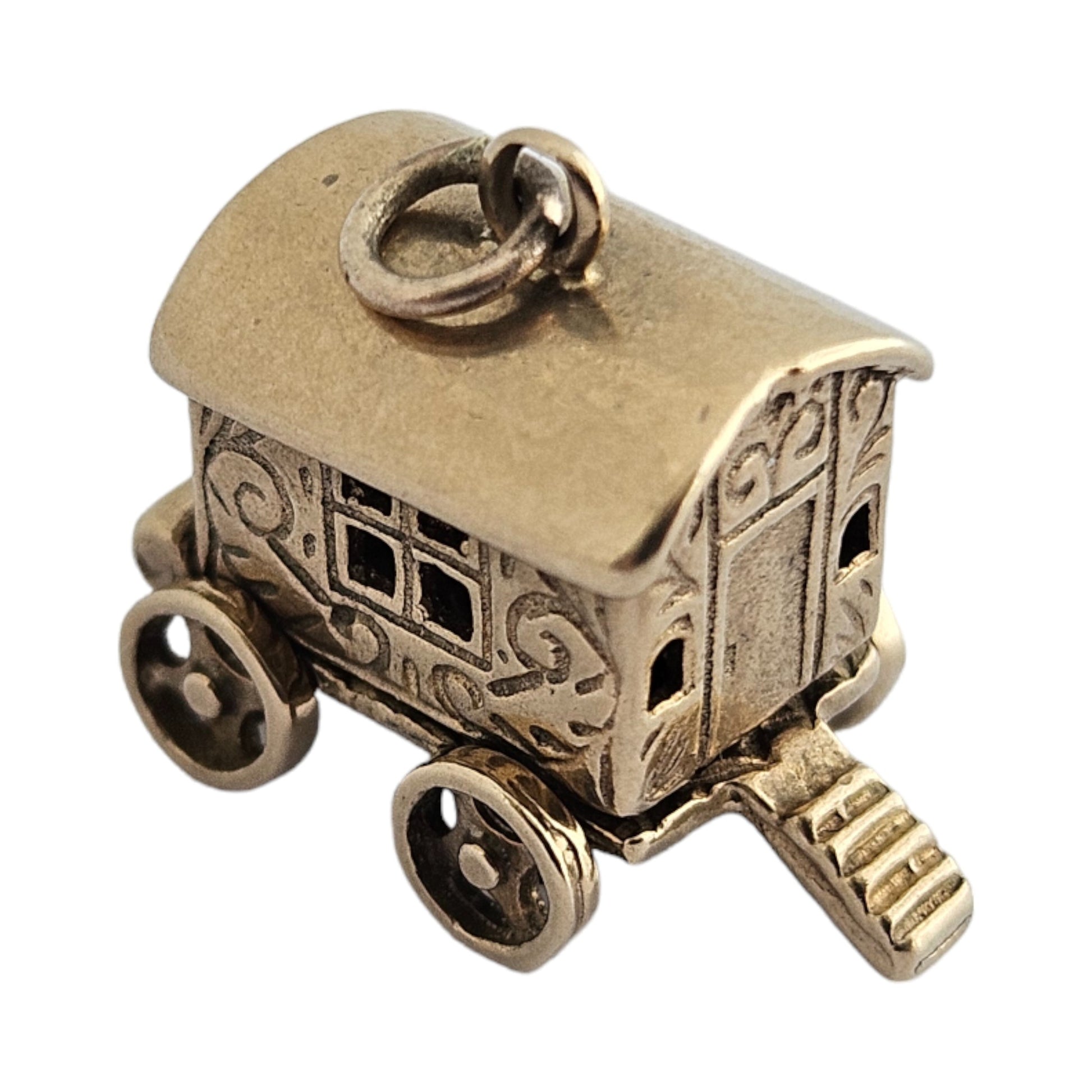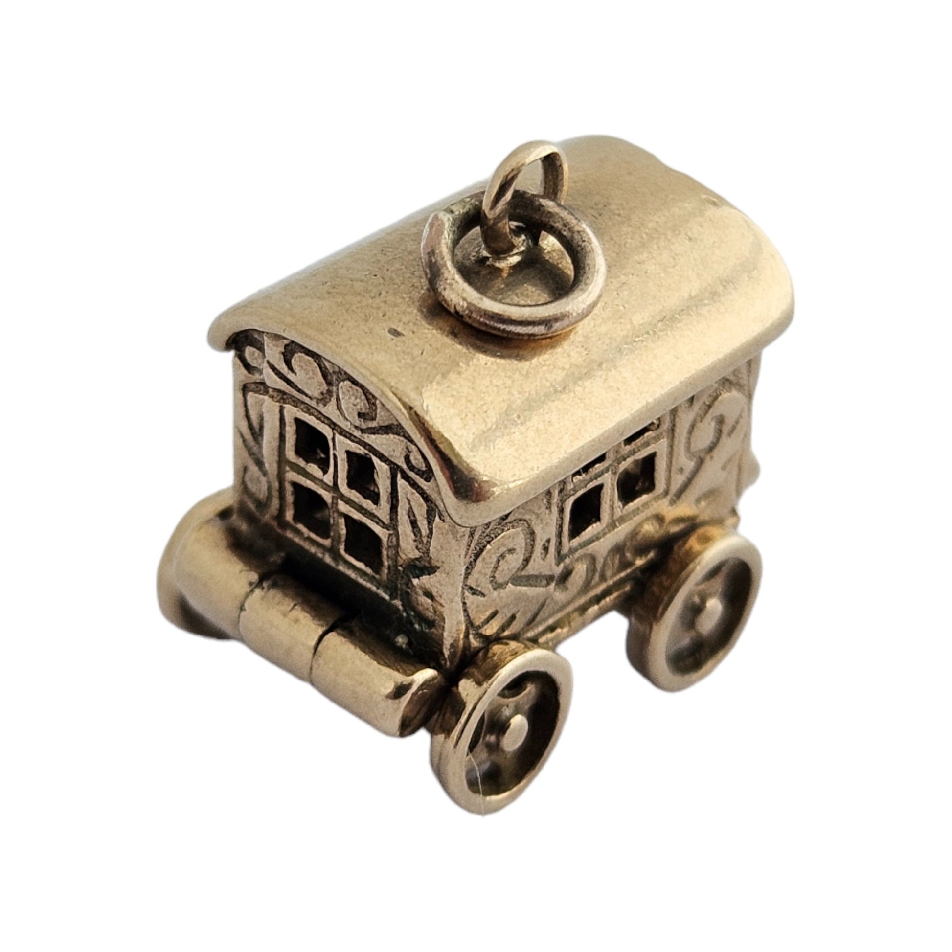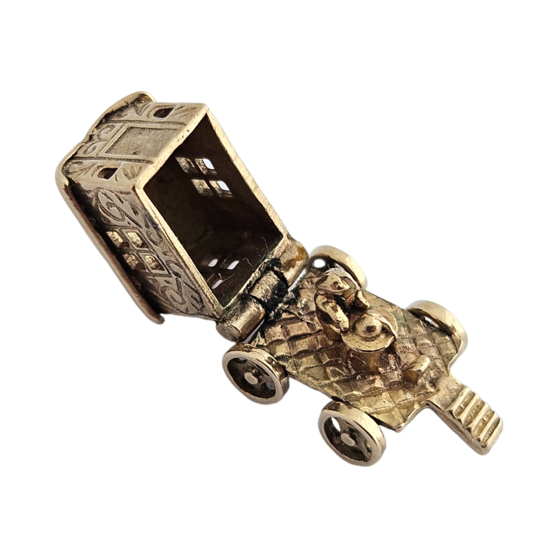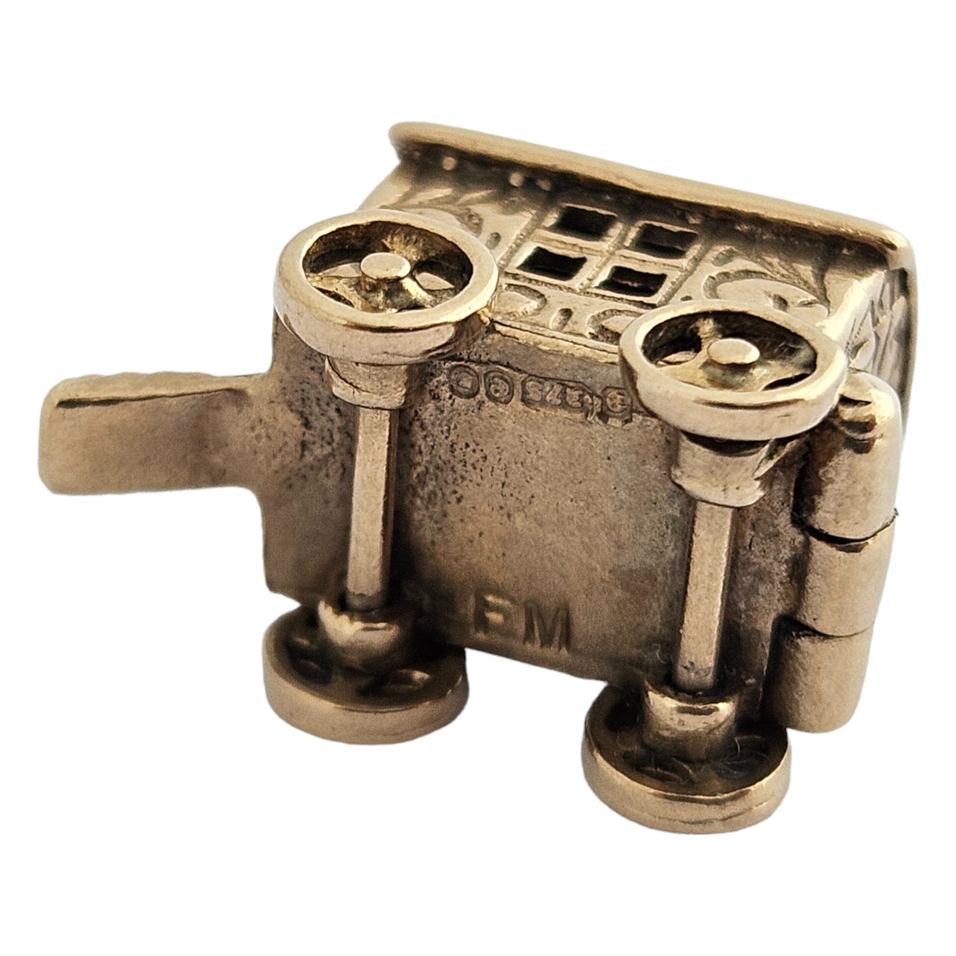 We are selling a 9ct 375 yellow gold Fortune Teller Opening Charm with rotating wheels. London hallmarks for 1960