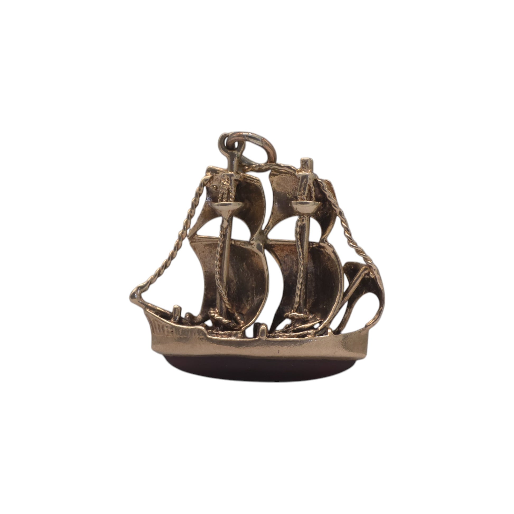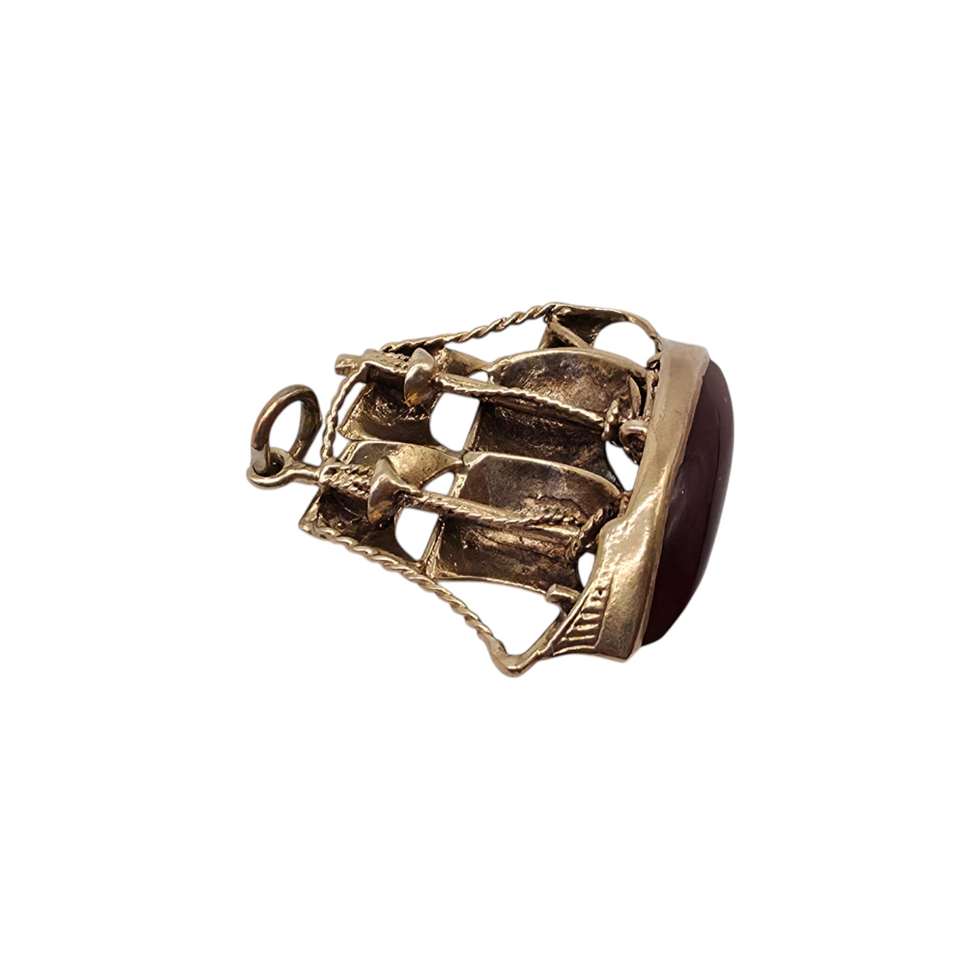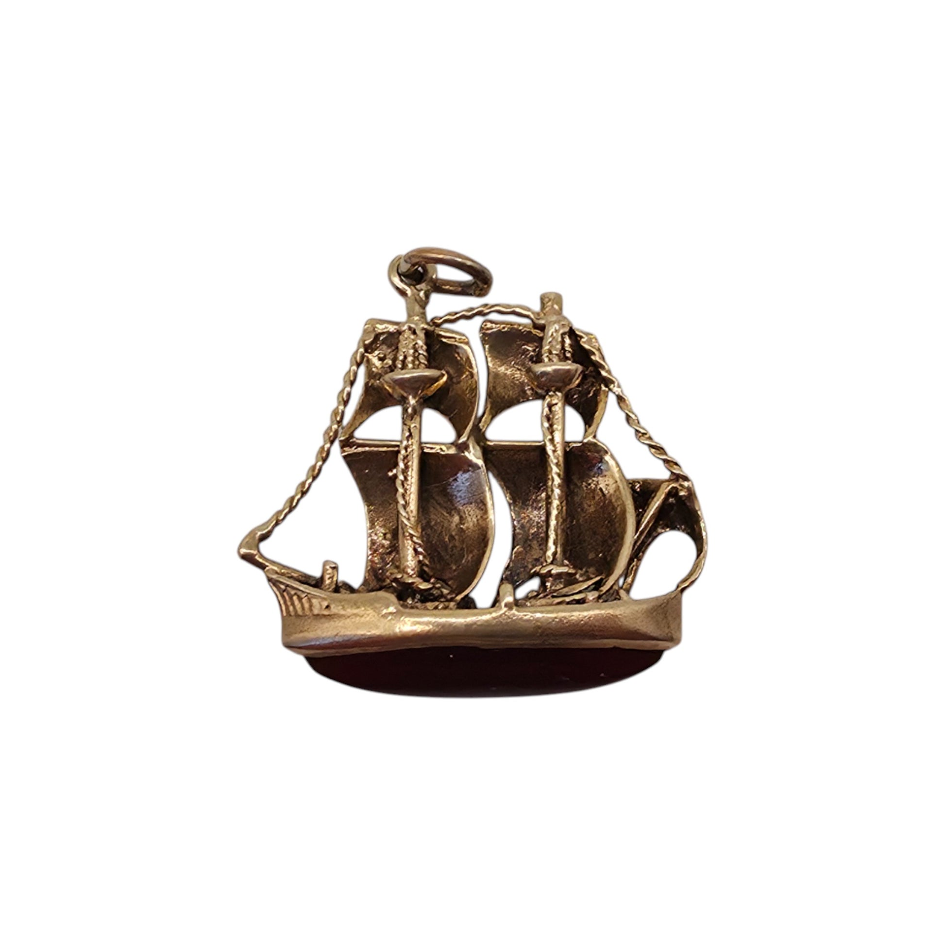 We are selling a pre-owned 9ct gold Galleon Ship Charm set with Carnelian.
