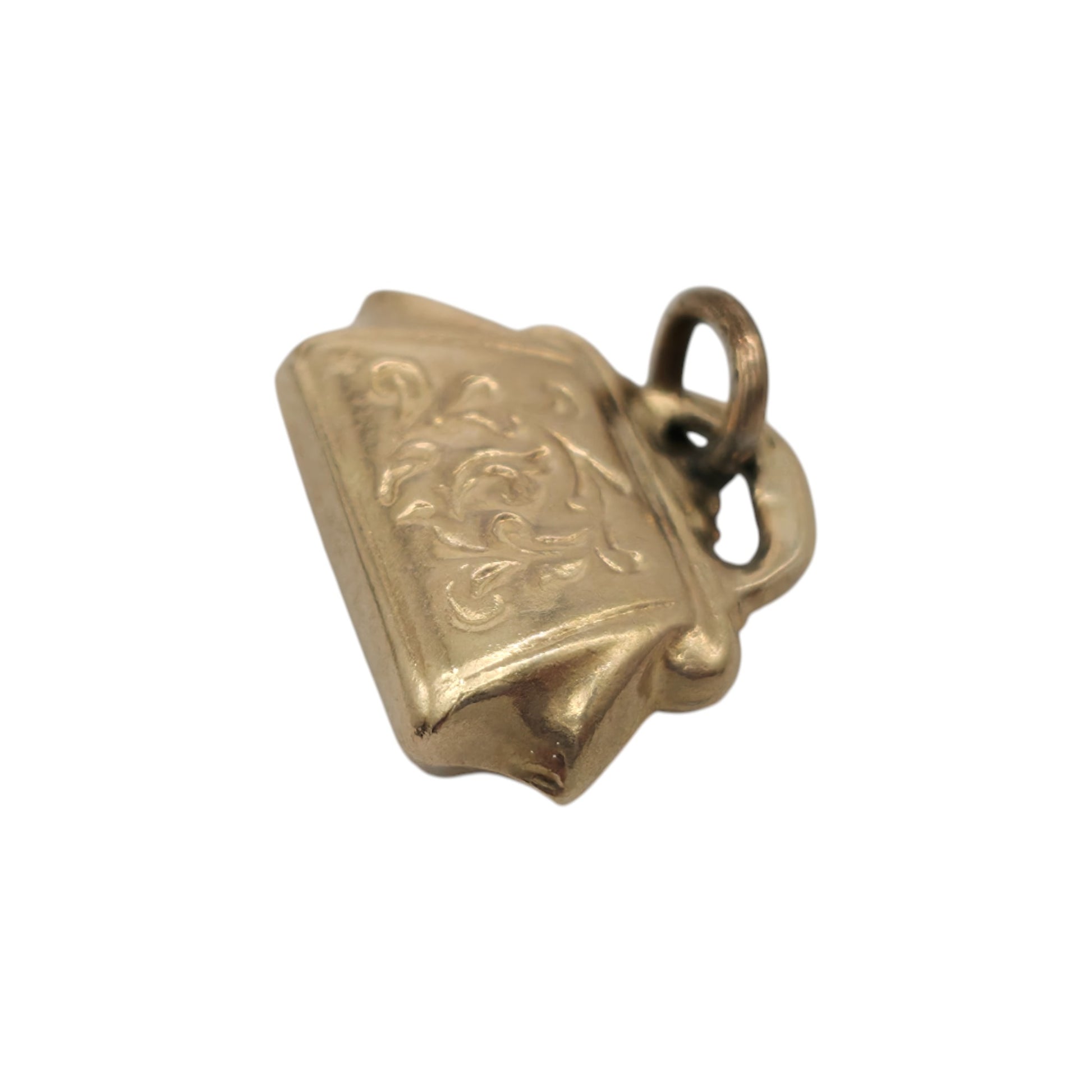 9ct 375 Yellow Gold Handbag Charm 1965 L 1.3 cm 0.6 g.