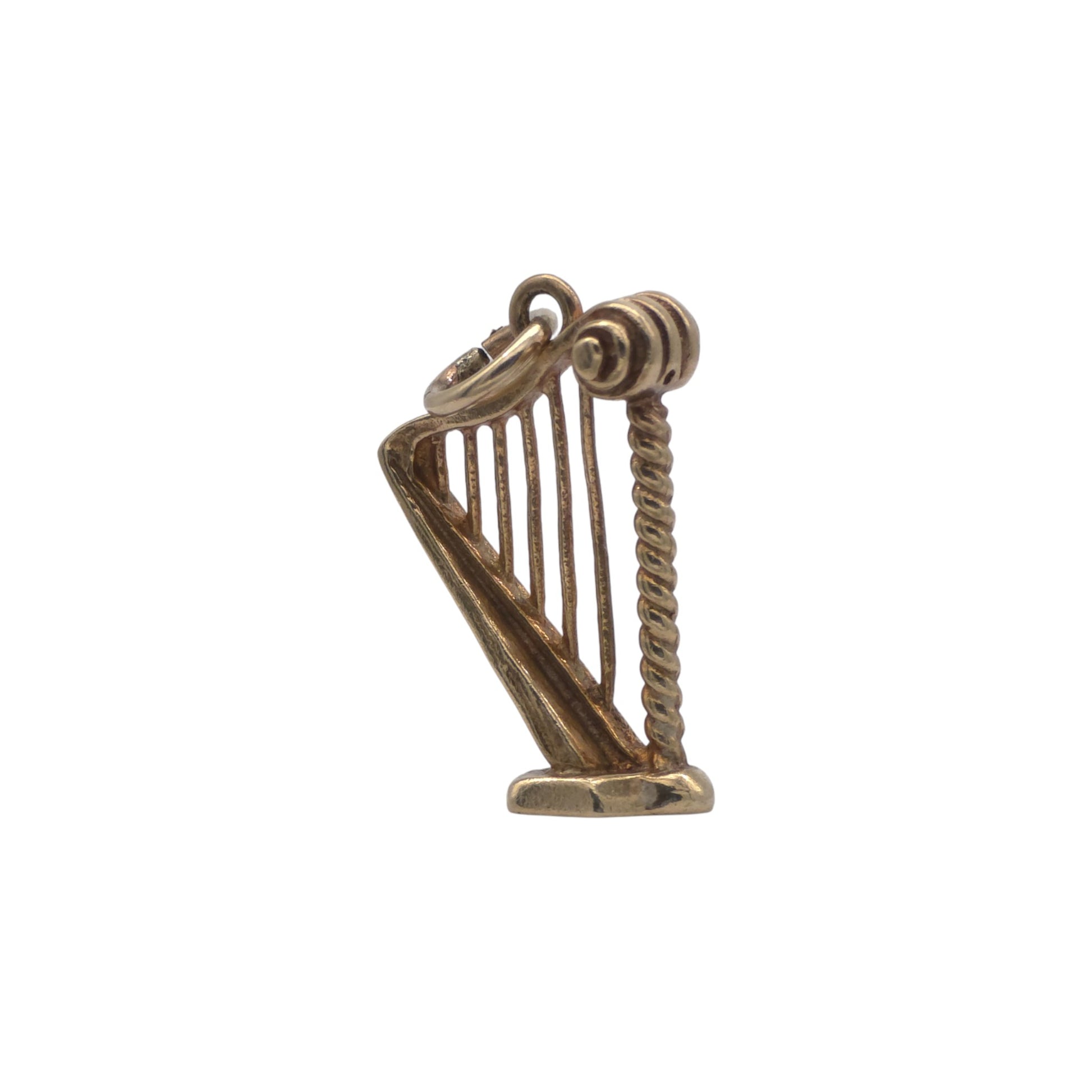 9ct 375 Yellow Gold Harp Charm 1973 L 1.9 cm 2.2 g.