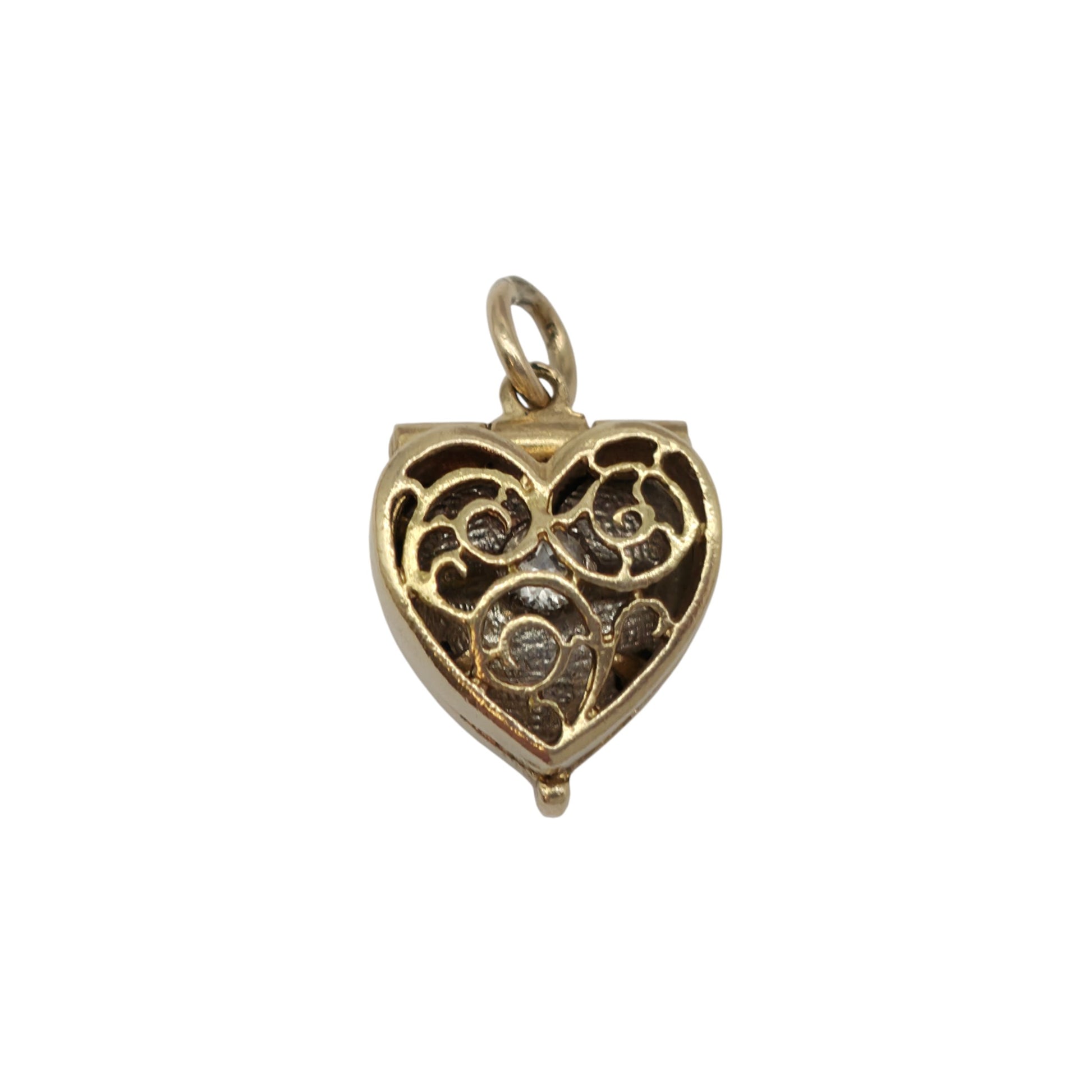 9ct 375 Yellow Gold Heart Ring Box Opening Charm 1973 L 1.3 cm 4.6 g.
