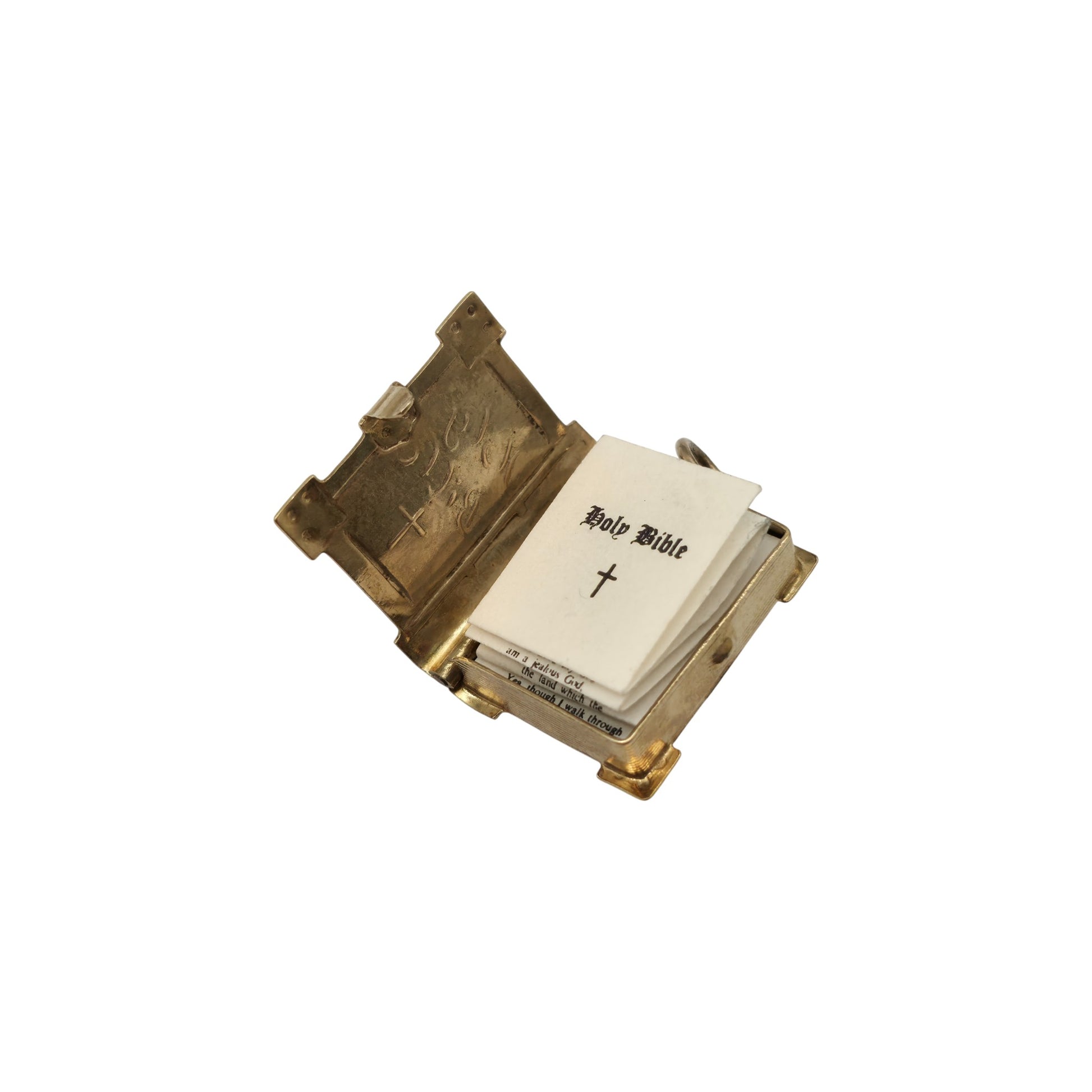 9ct 375 Yellow Gold Holy Bible Opening Charm 1977 L 2.0 cm 3.6 g.
