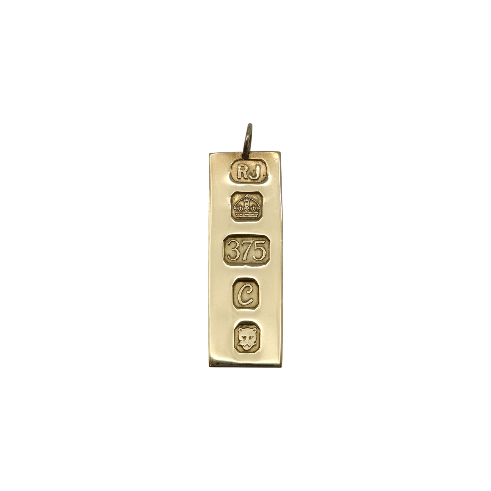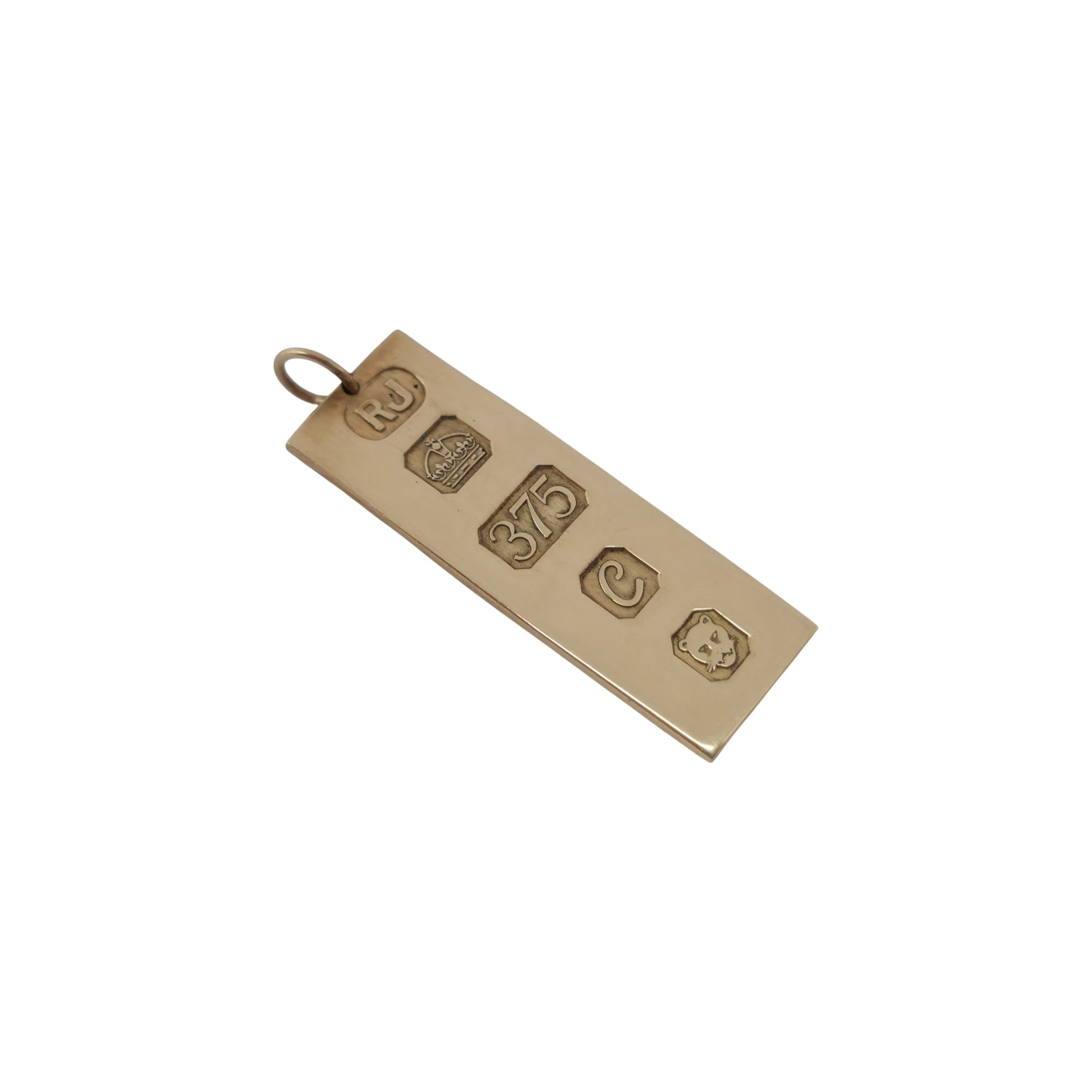 9ct 375 Yellow Gold Ingot Pendant 1977 L 3.4 cm 6.9 g.