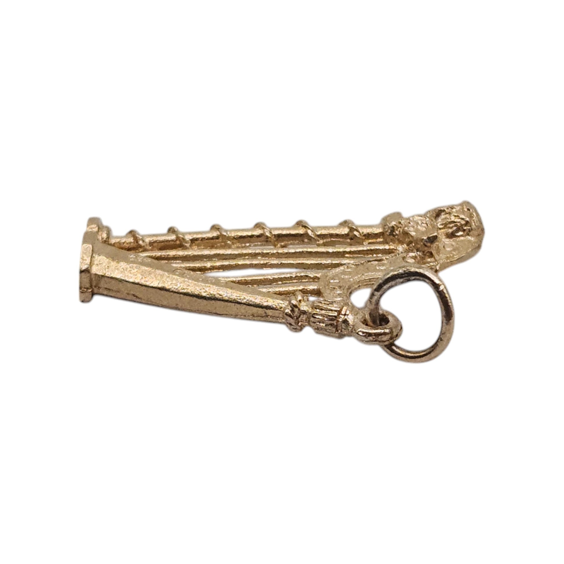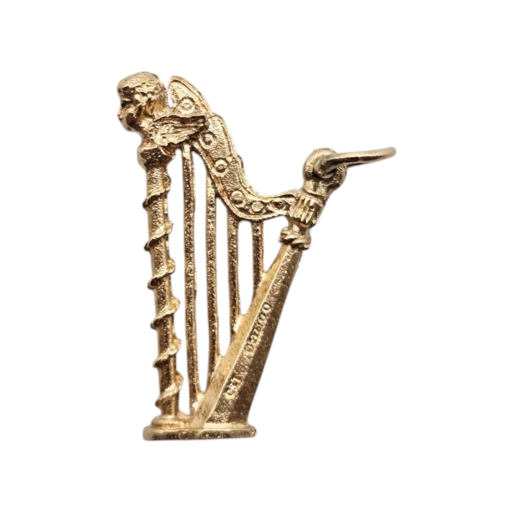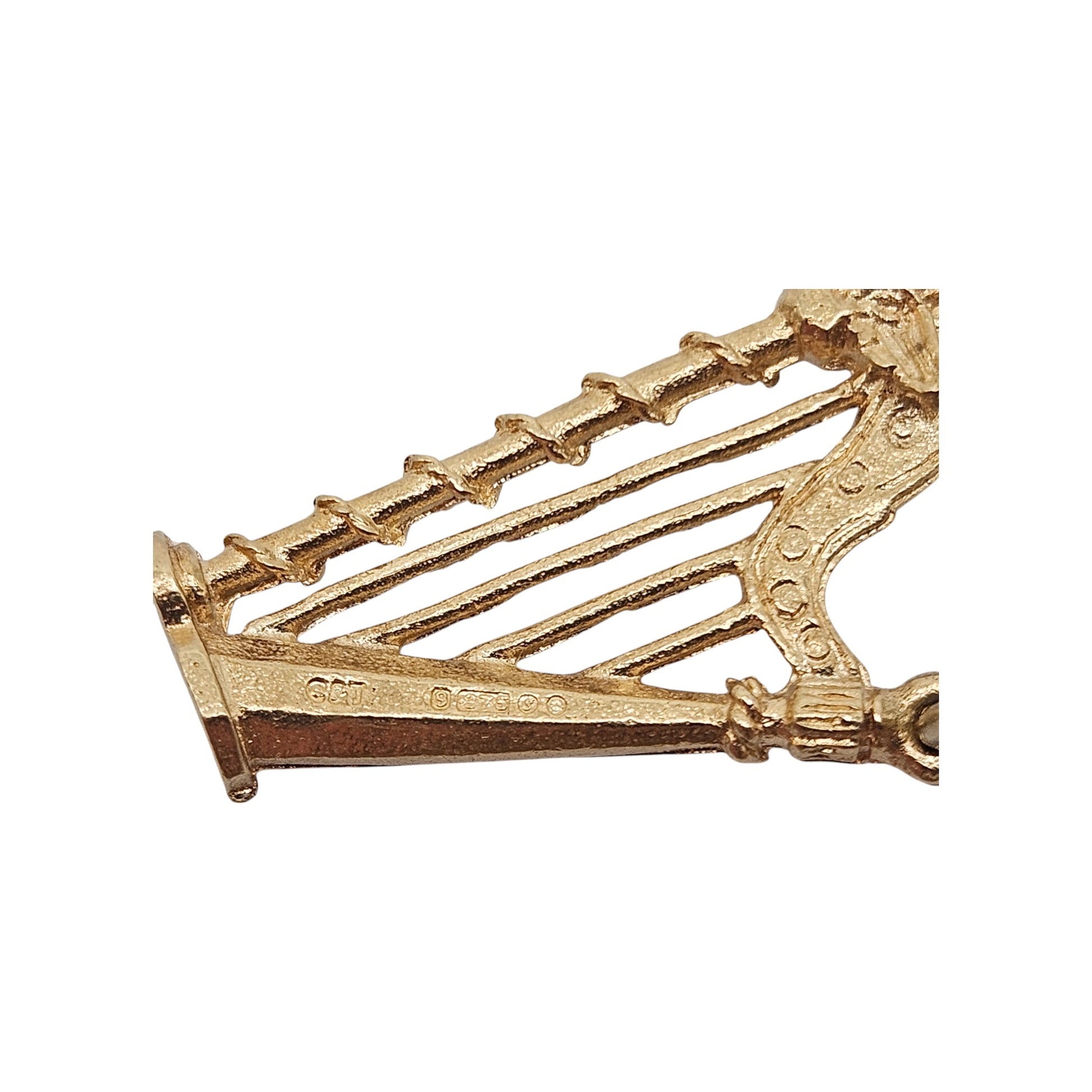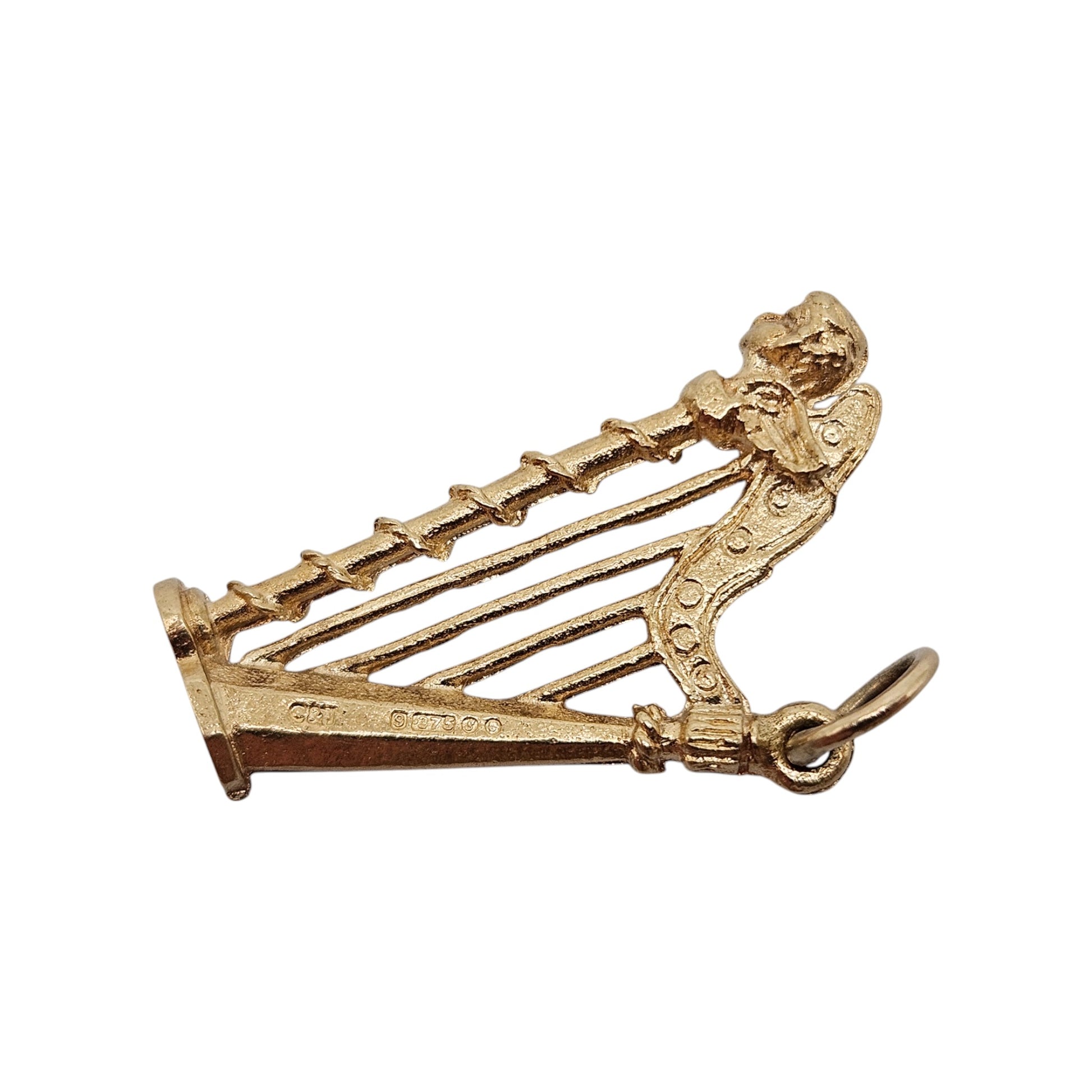 9ct 375 Yellow Gold Irish Harp Charm Pendant 1973 L 2.4 cm 2.3 g.