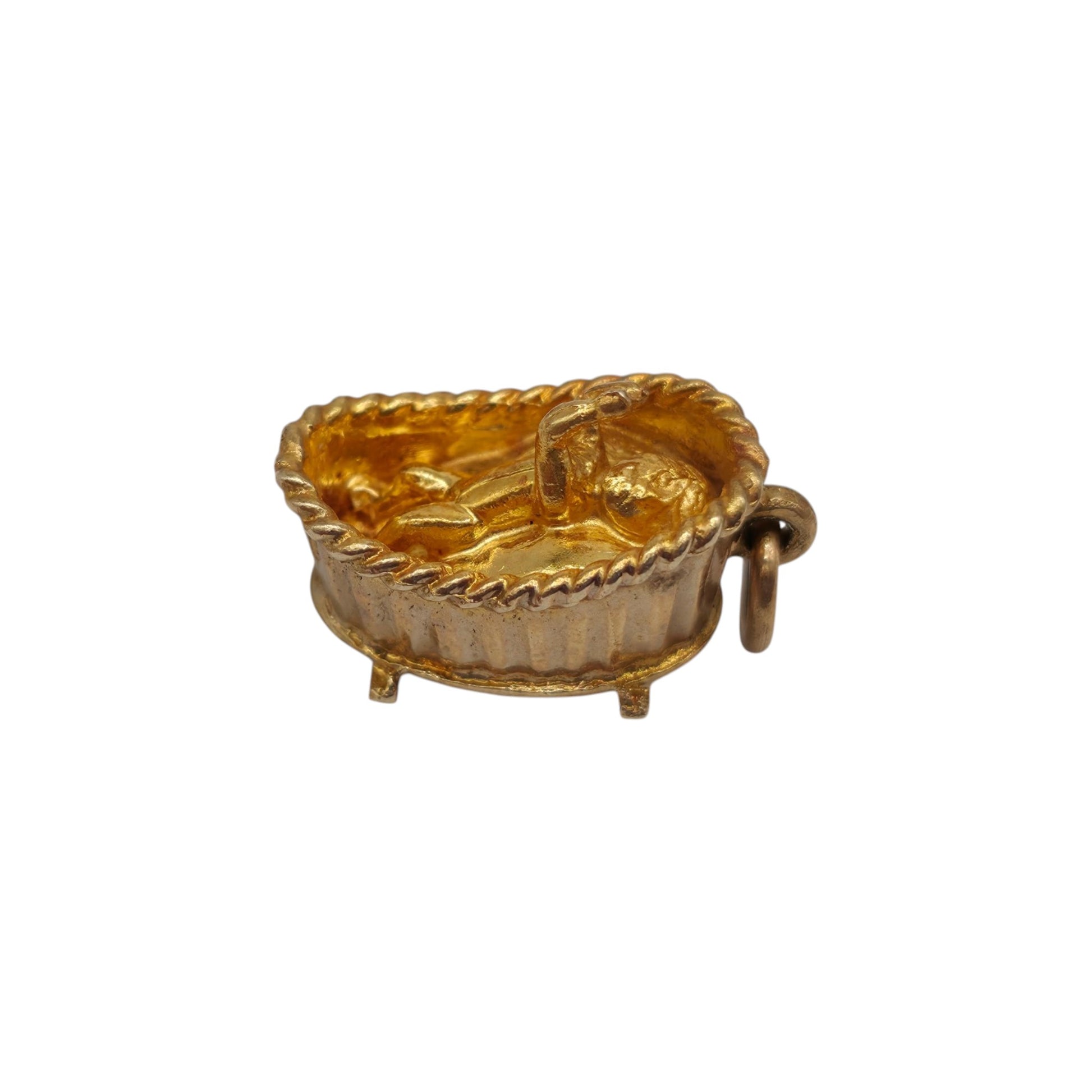 9ct 375 Yellow Gold Moses Basket Charm 1965 L 1.5 cm 4.0 g.