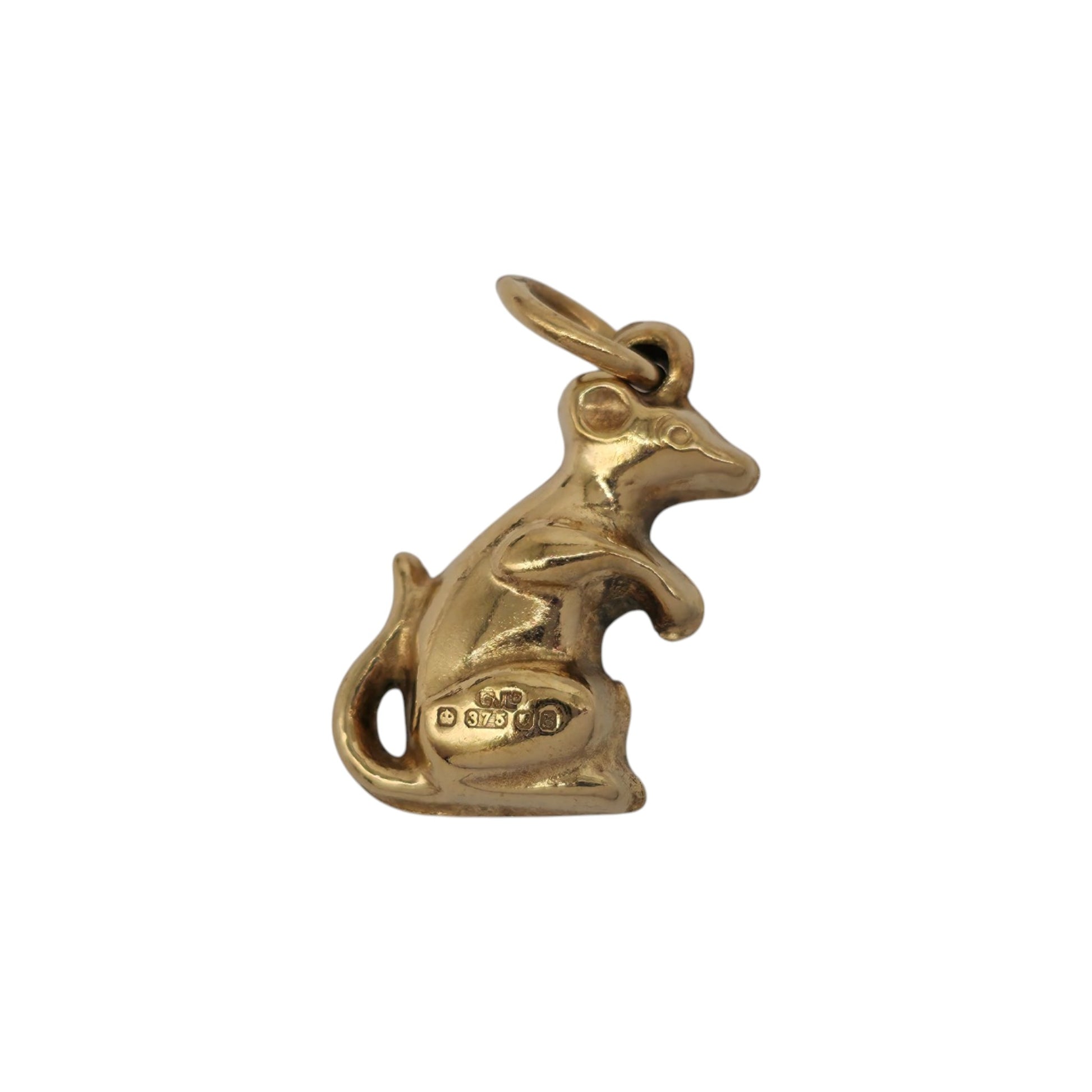 9ct 375 Yellow Gold Mouse Charm 1976 L 1.3 cm 0.8 g.