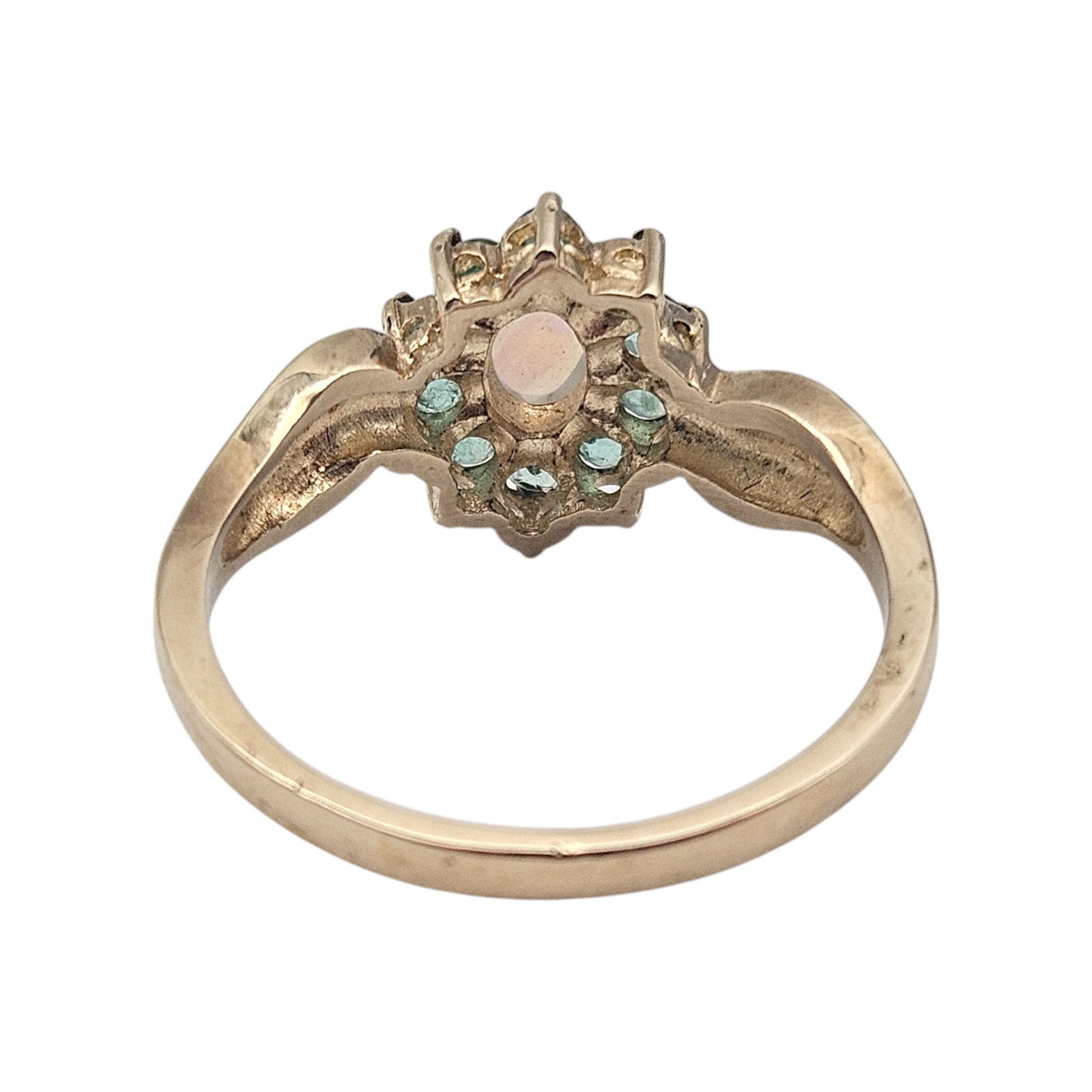 9ct 375 Yellow Gold Opal & Emeralds Ring Size P 1/2 2.9 g.