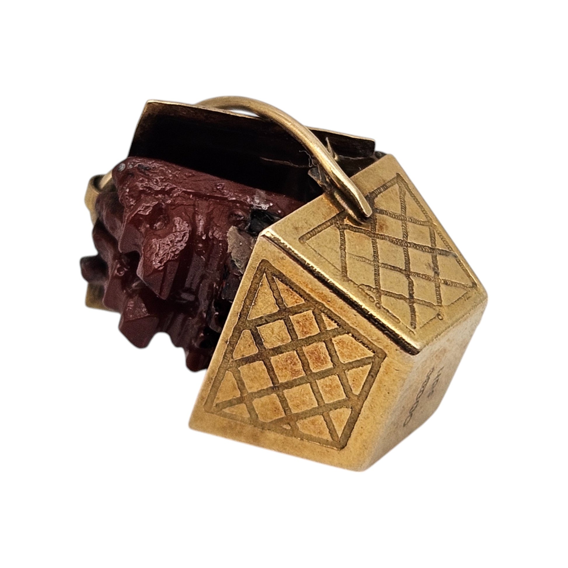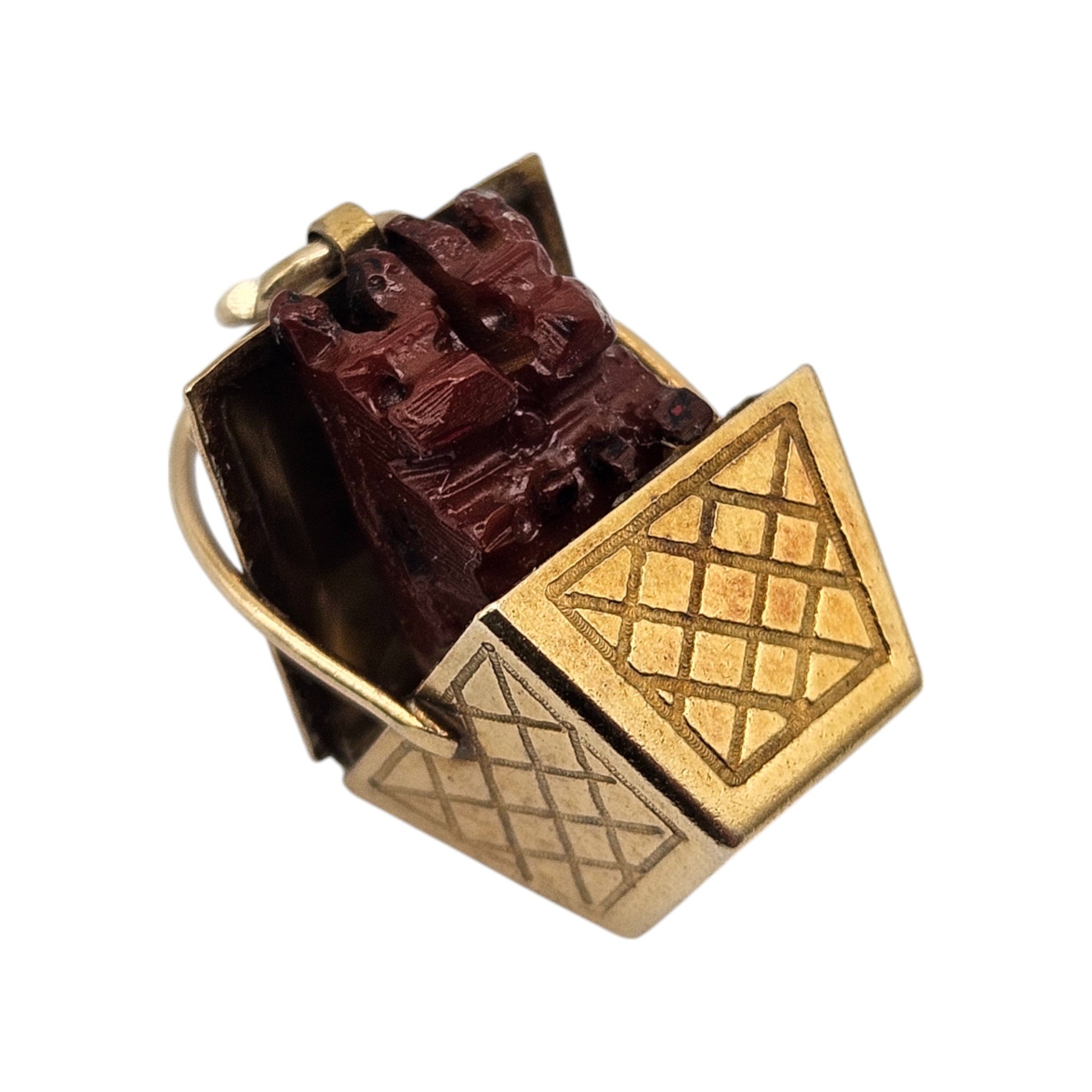 9ct 375 Yellow Gold Puppies In Basket Charm 1948 L 1.7 cm 2.5 g.