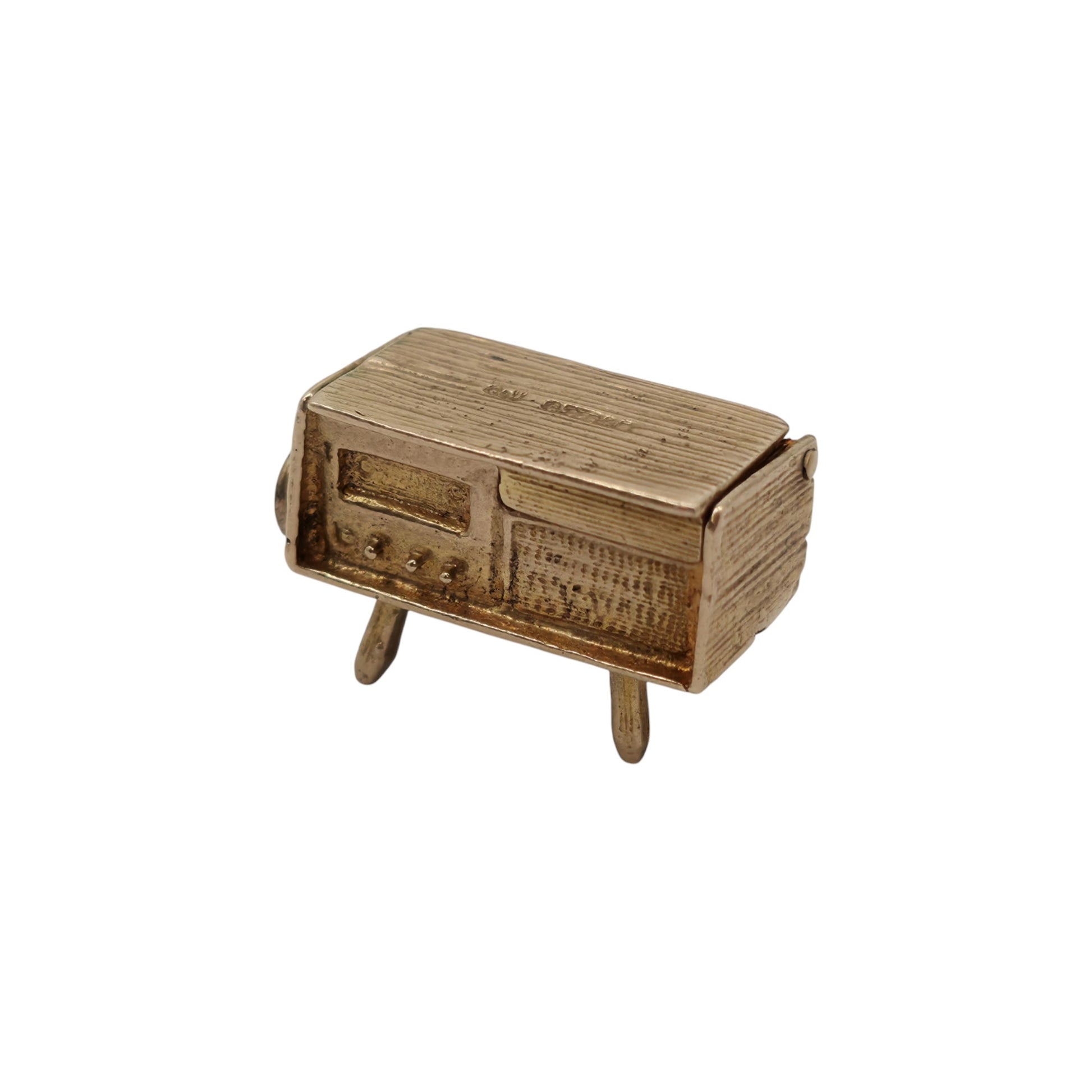 9ct 375 Yellow Gold Record Player Opening Charm 1959 L 1.6 cm 4.3 g.