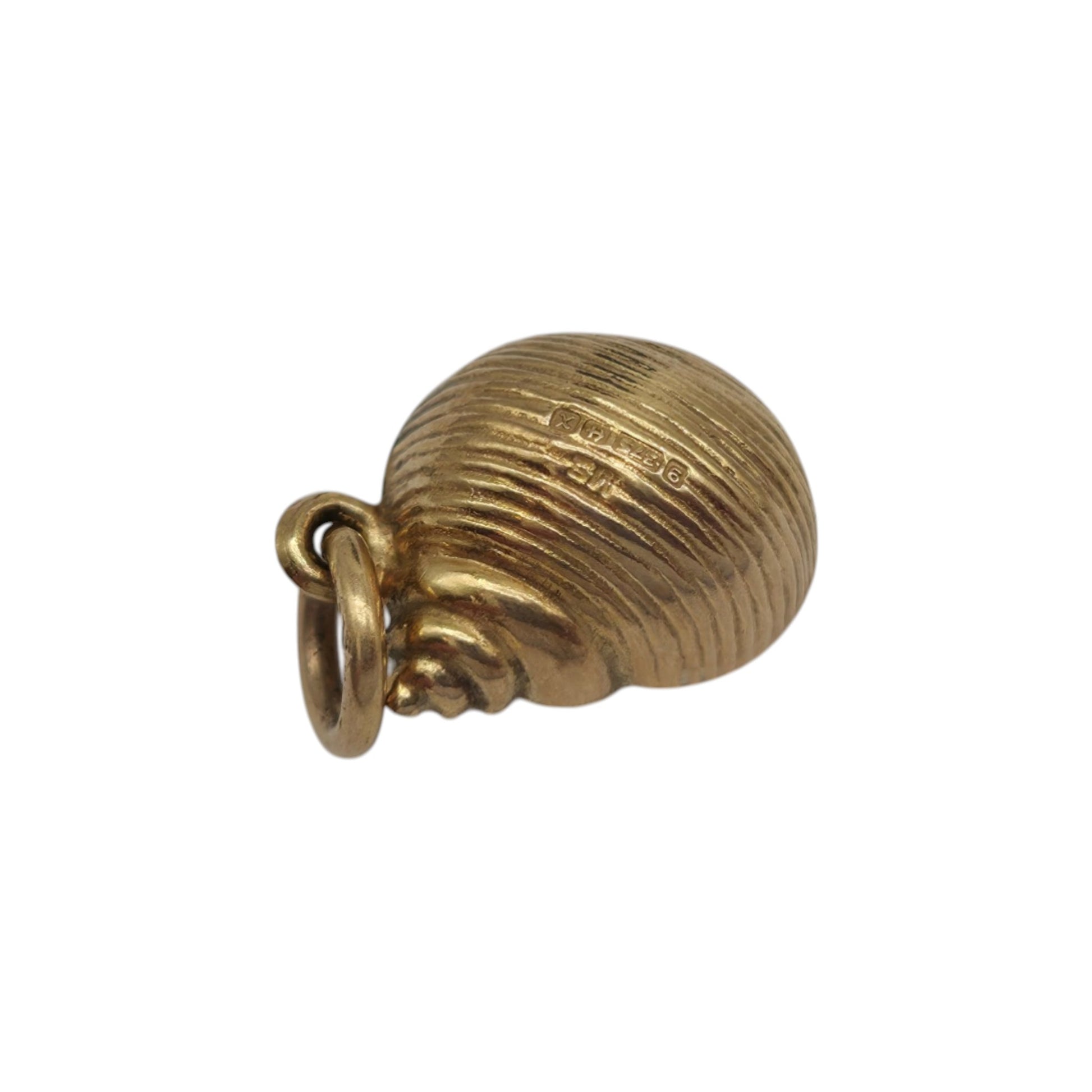 9ct 375 Yellow Gold Seashell Charm 1972 L 1.2 cm 0.8 g.