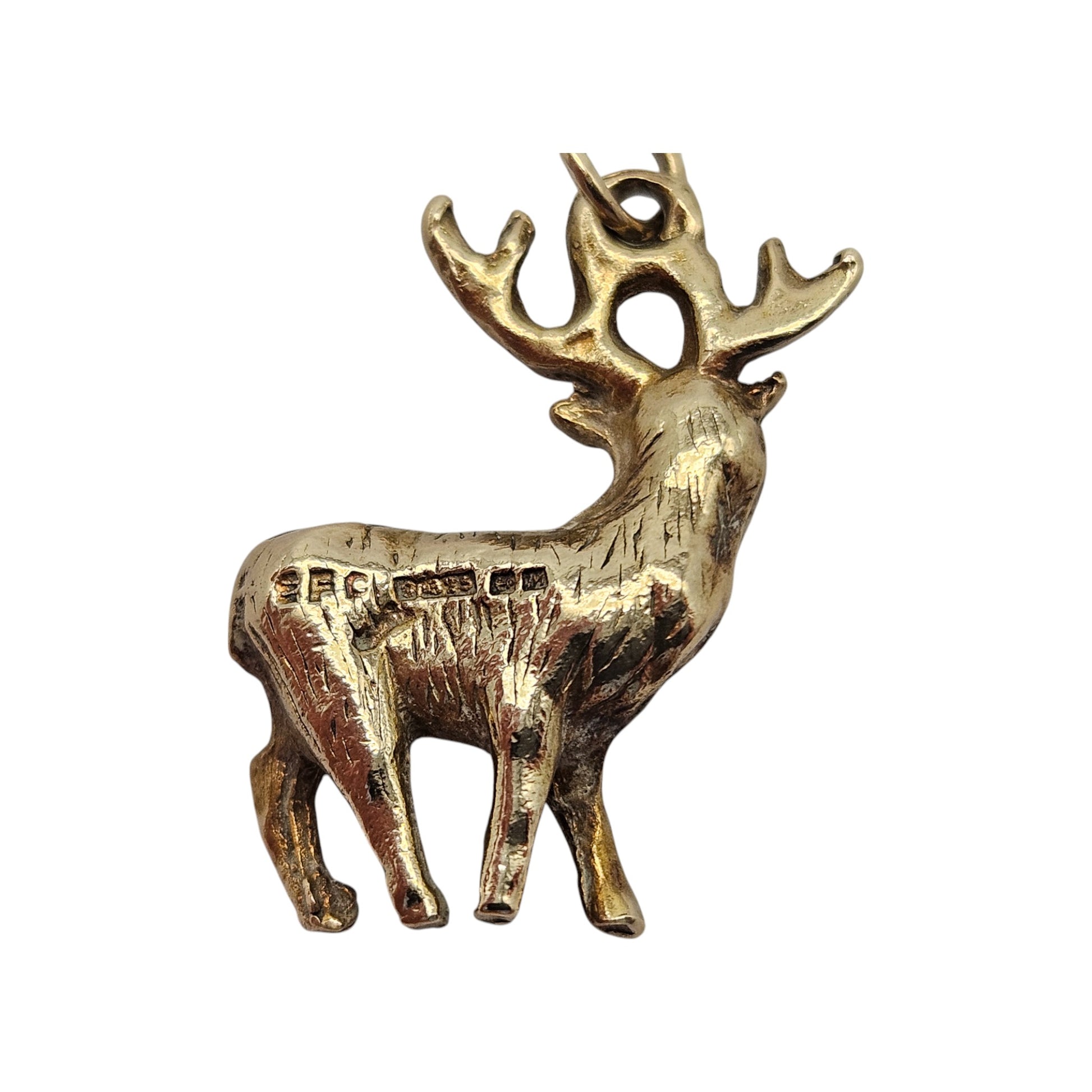 9ct 375 Yellow Gold Stag Charm 1961 L 2.0 cm 3.3 g.