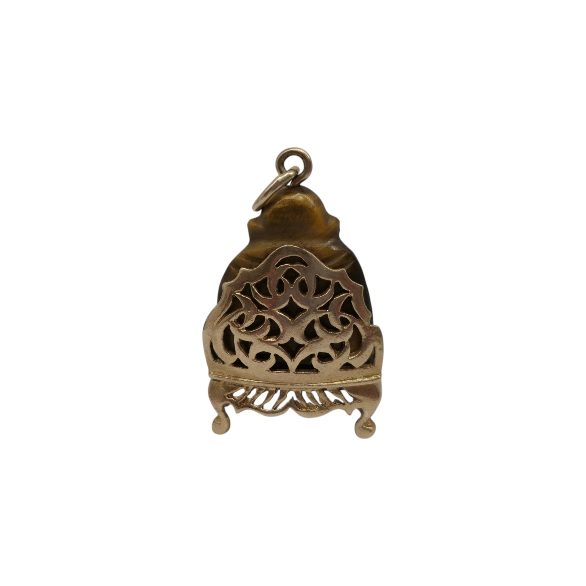 9ct 375 Yellow Gold & Tiger's Eye Buddha Charm 1962 L 2.6 cm 7.3 g.