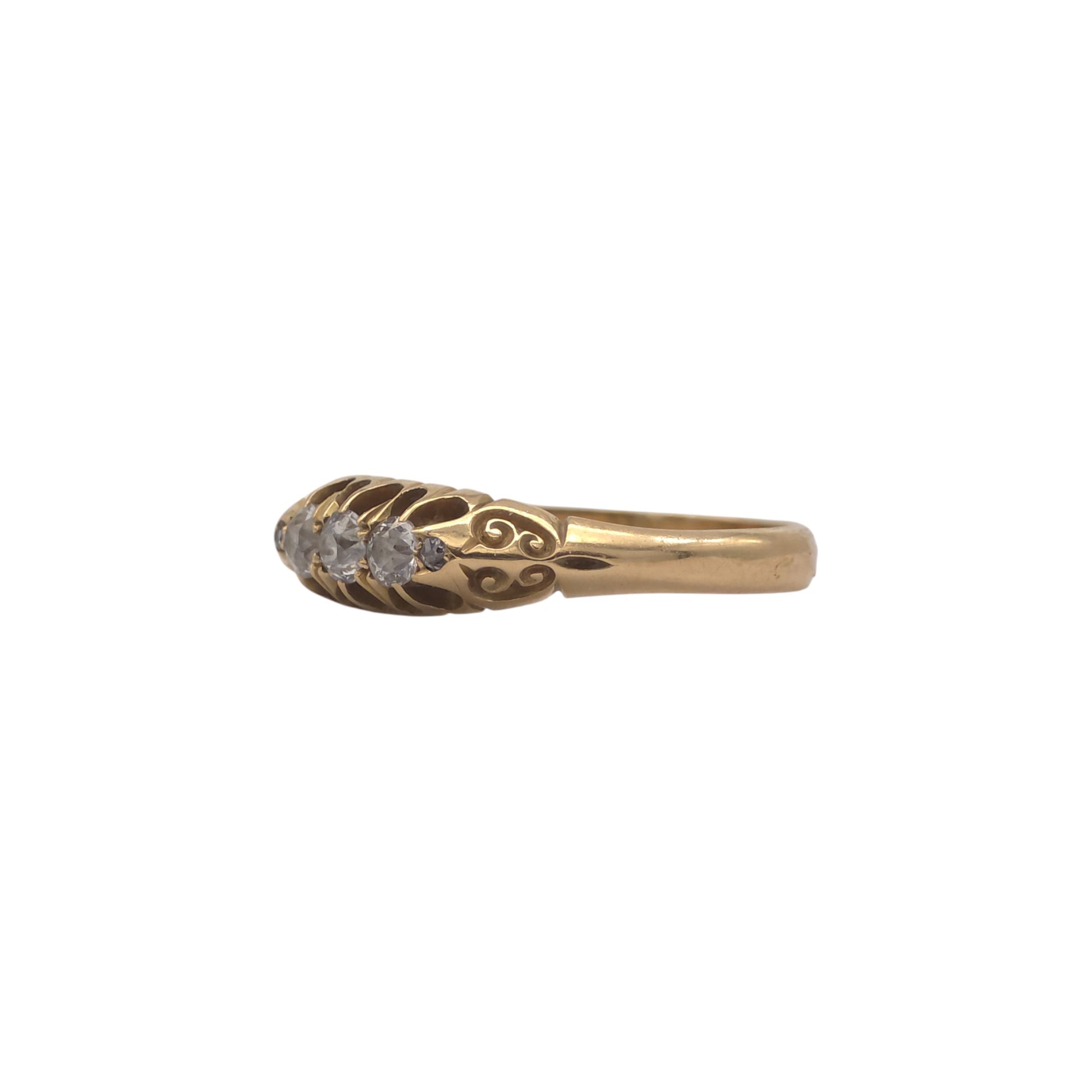 We are selling a pre-owned antique 18ct gold Boat Shaped Ring set with five Diamonds. Diamonds totaling 0.30 ct.
