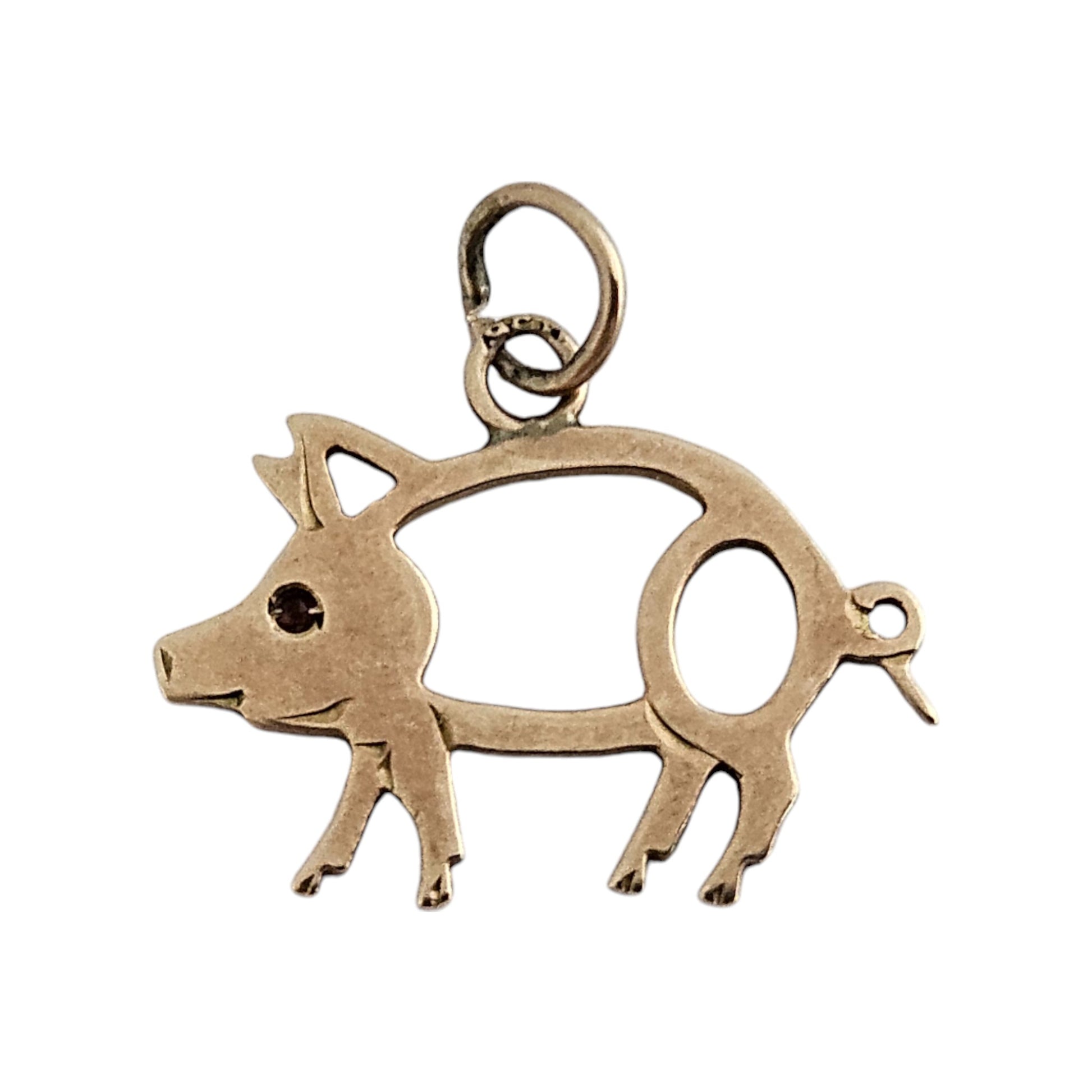 We are selling an antique 9ct Rose gold Pig Charm with a cabochon ruby eye. Marked 9CT for early 1900's.
