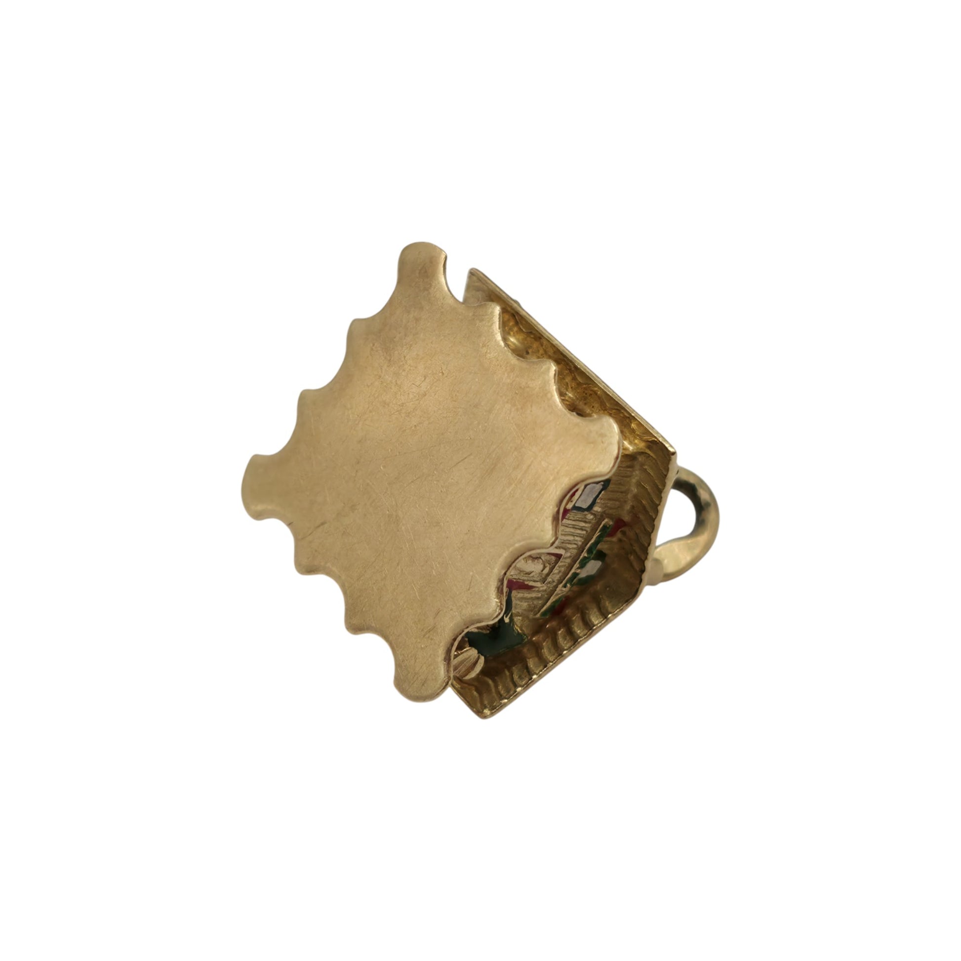 Heavy 18ct 750 Yellow Gold & Enamel Christmas Chalet Opening Charm L 1.3 cm 5.6 g.